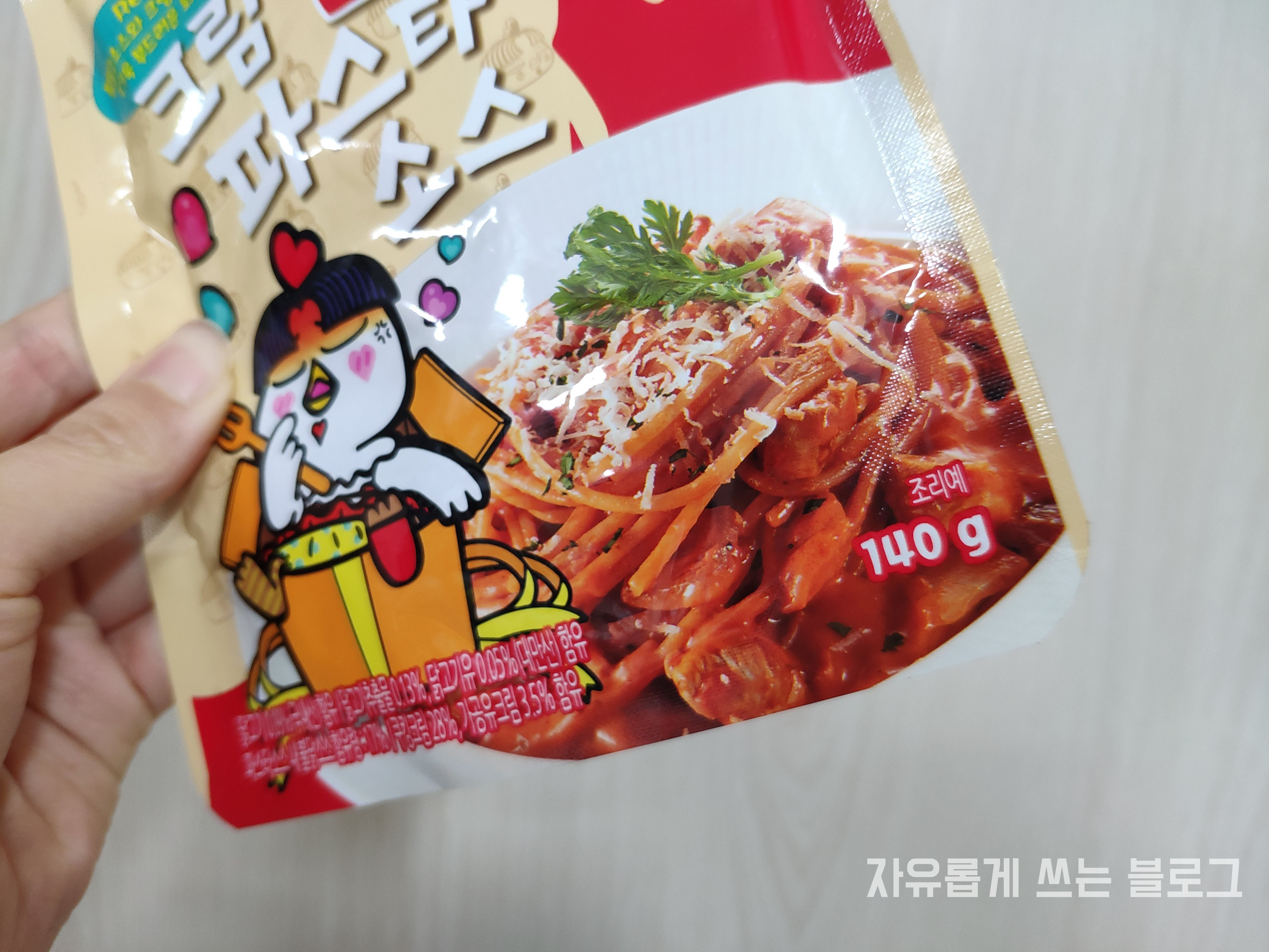 불닭 크림 파스타 소스 1팩당 양은 140g이 들어 있어요.
