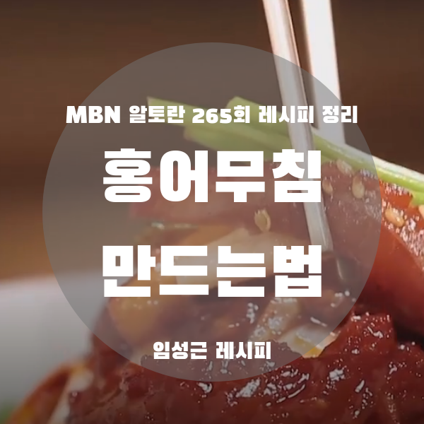 그럼 지금부터 알토란 임성근 선생님의 홍어무침 맛있게만드는 법 정리해보도록 하겠습니다.