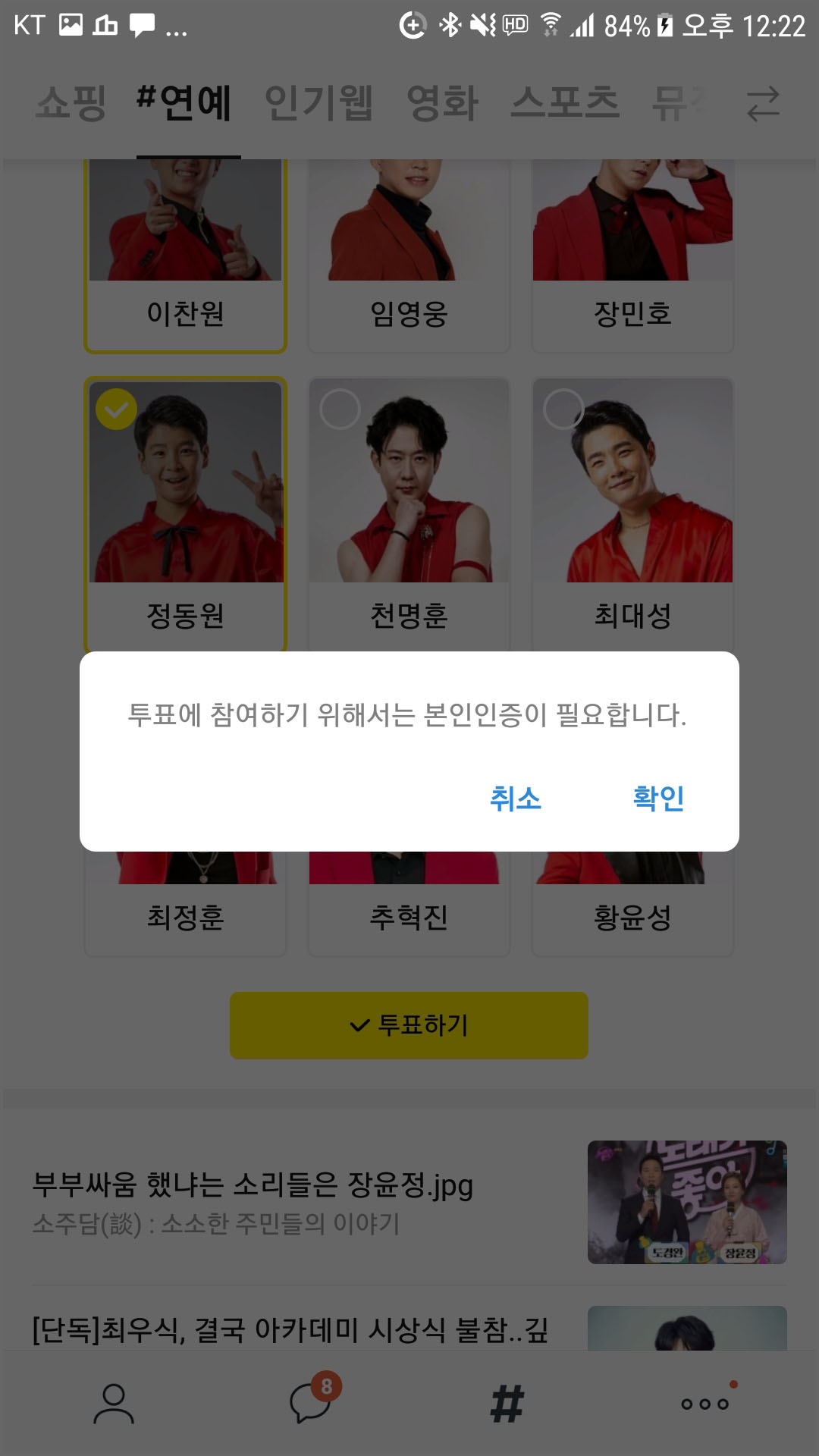 절차에 따라 본인인증을 마친 뒤 다시 투표를 해 주시면 됩니다.