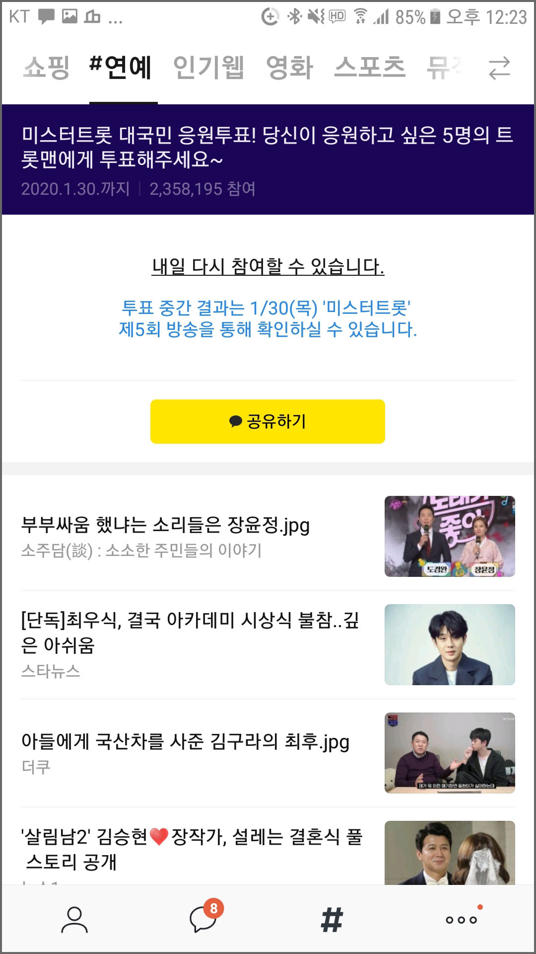 # 미스터트롯 투표방법 : 카카오톡에서 투표하기