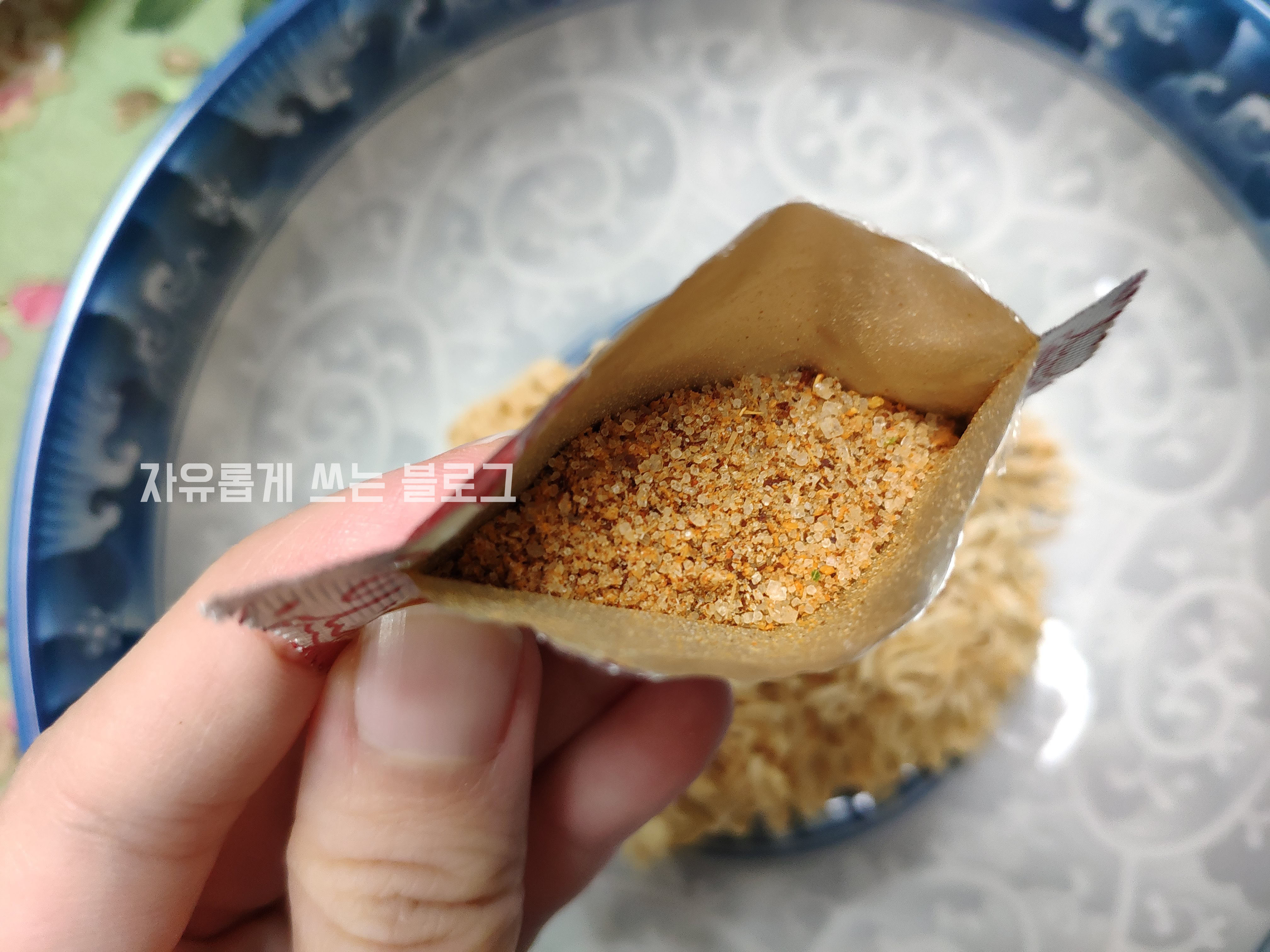 포장을 뜯으면 이렇게 두 종류의 스프가 들어 있습니다.