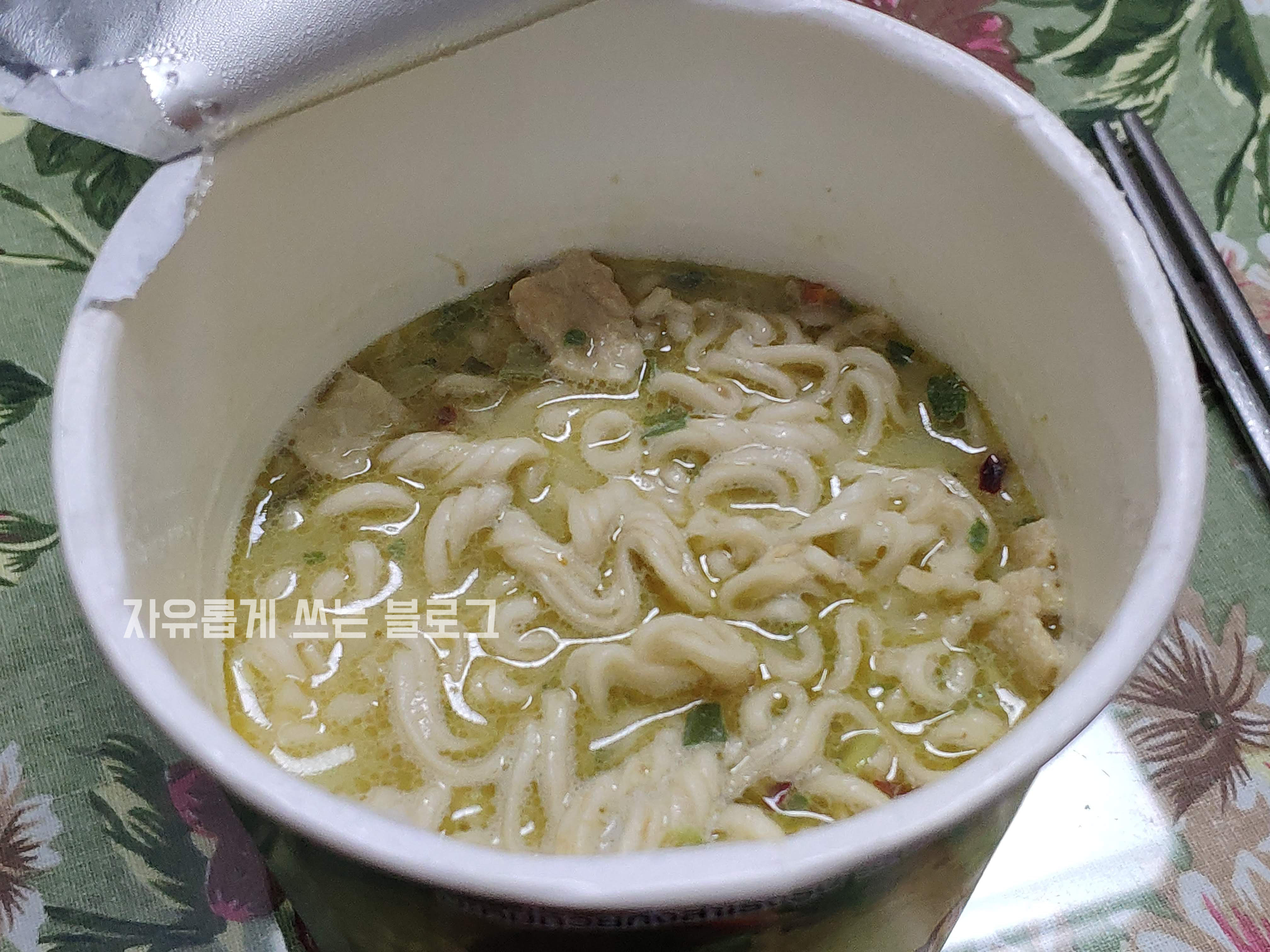 국물 색깔이 여느 컵라면들과는 조금 느낌이 다르죠!?