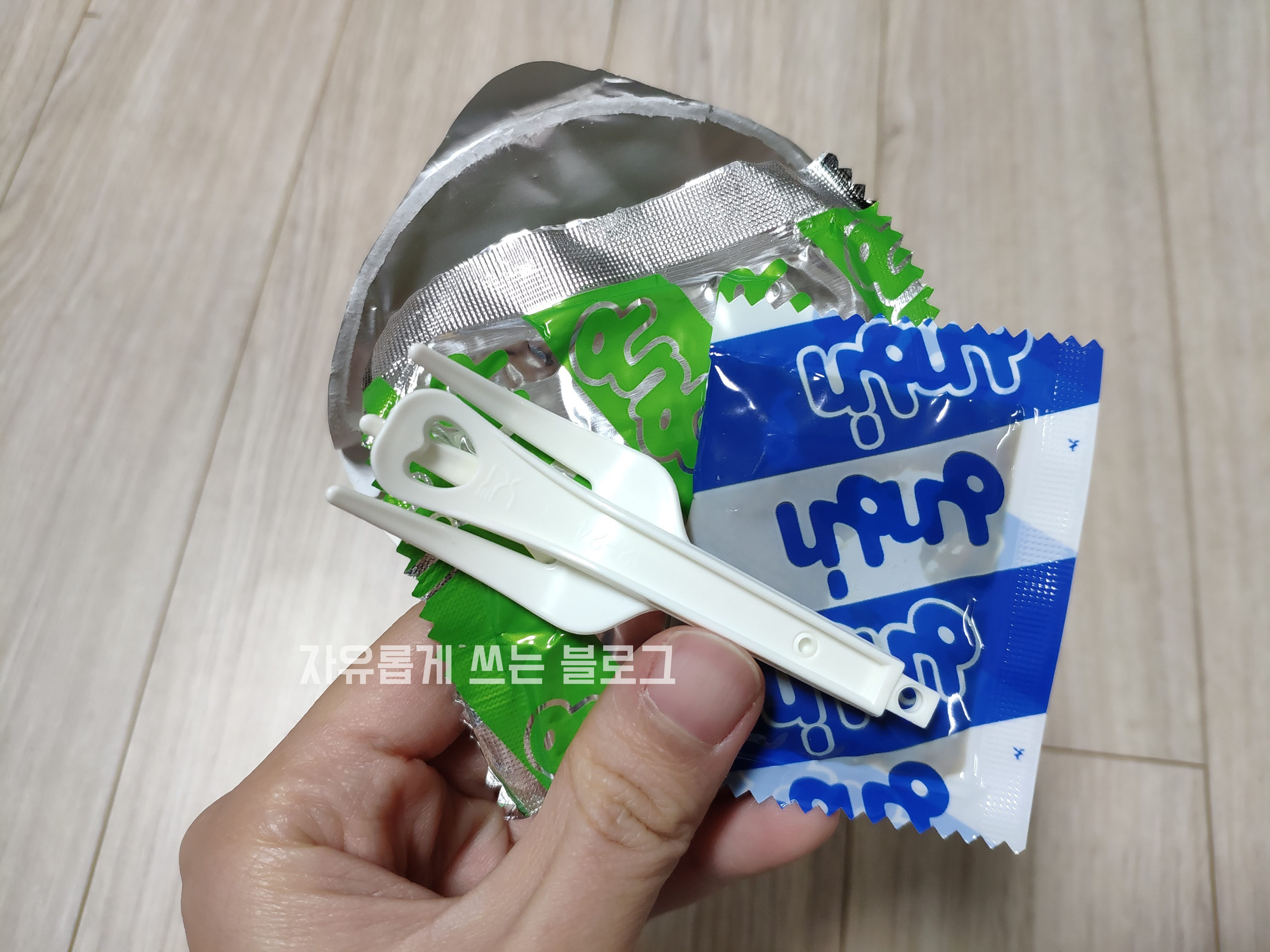 꾹 짜서 넣어준 다음 포장에 붙어있는것까지 싹싹 긁어서 넣어주었네요.ㅋㅋ