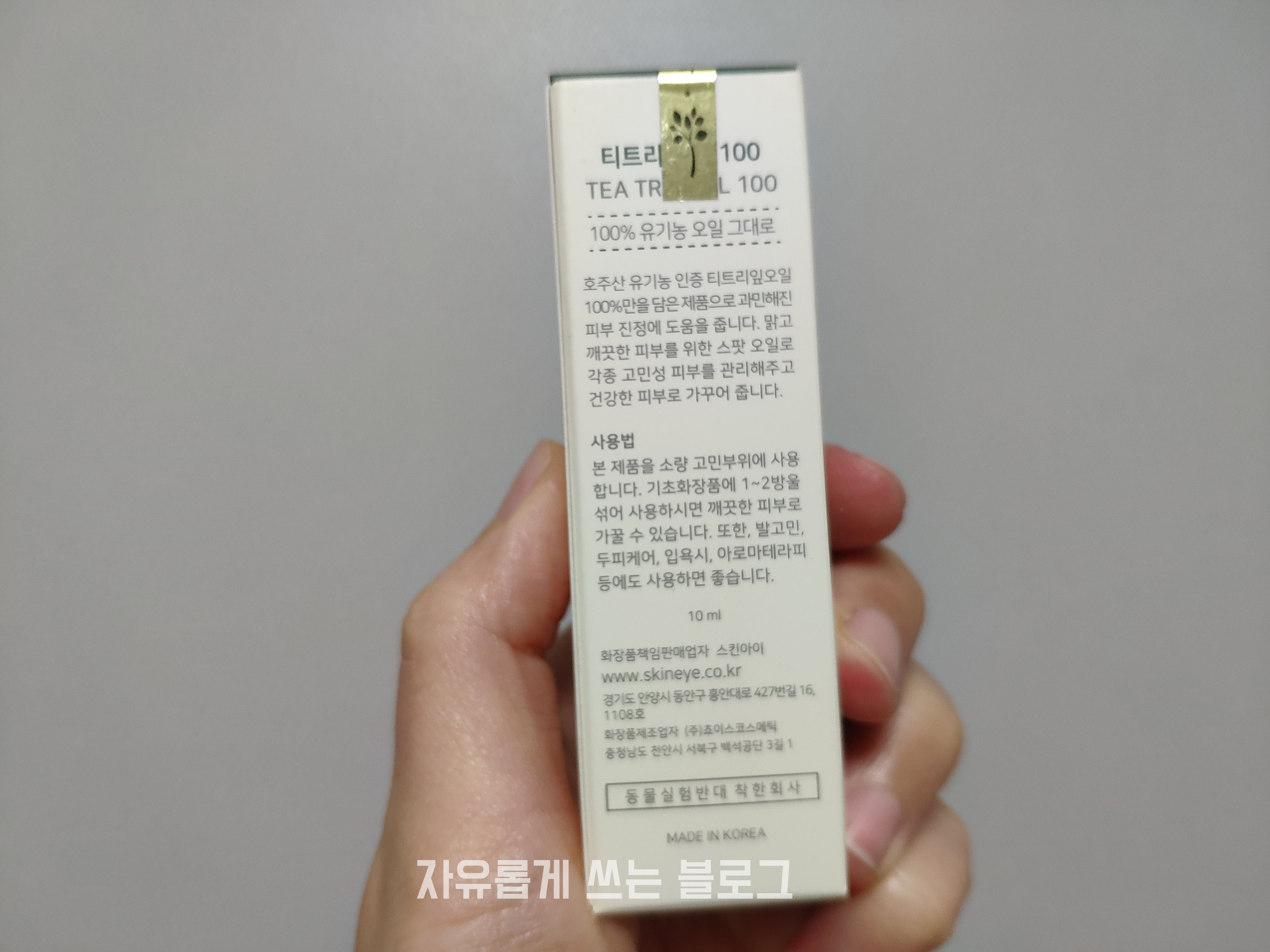 100% 순수한 호주산 유기농 티트리 오일이라고 해요.