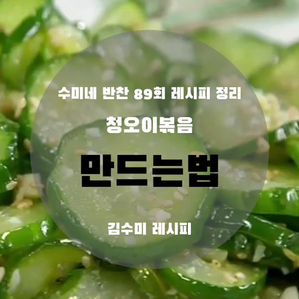 그럼 지금부터 수미네 반찬 김수미 선생님의 청오이볶음 황금레시피 정리해보도록 하겠습니다.