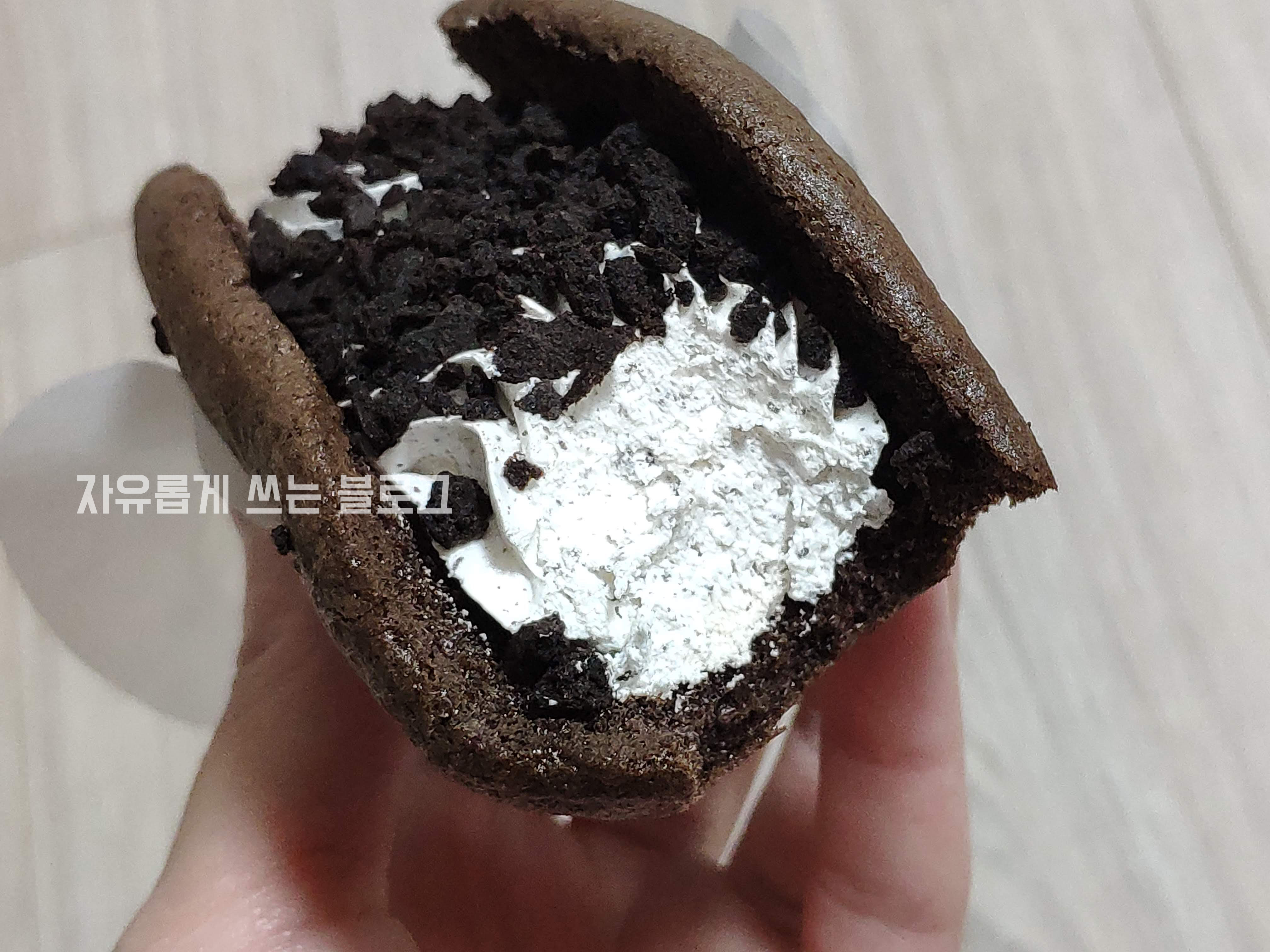 오레오 분말이 섞인 듯한 느낌의 크림이었어요!