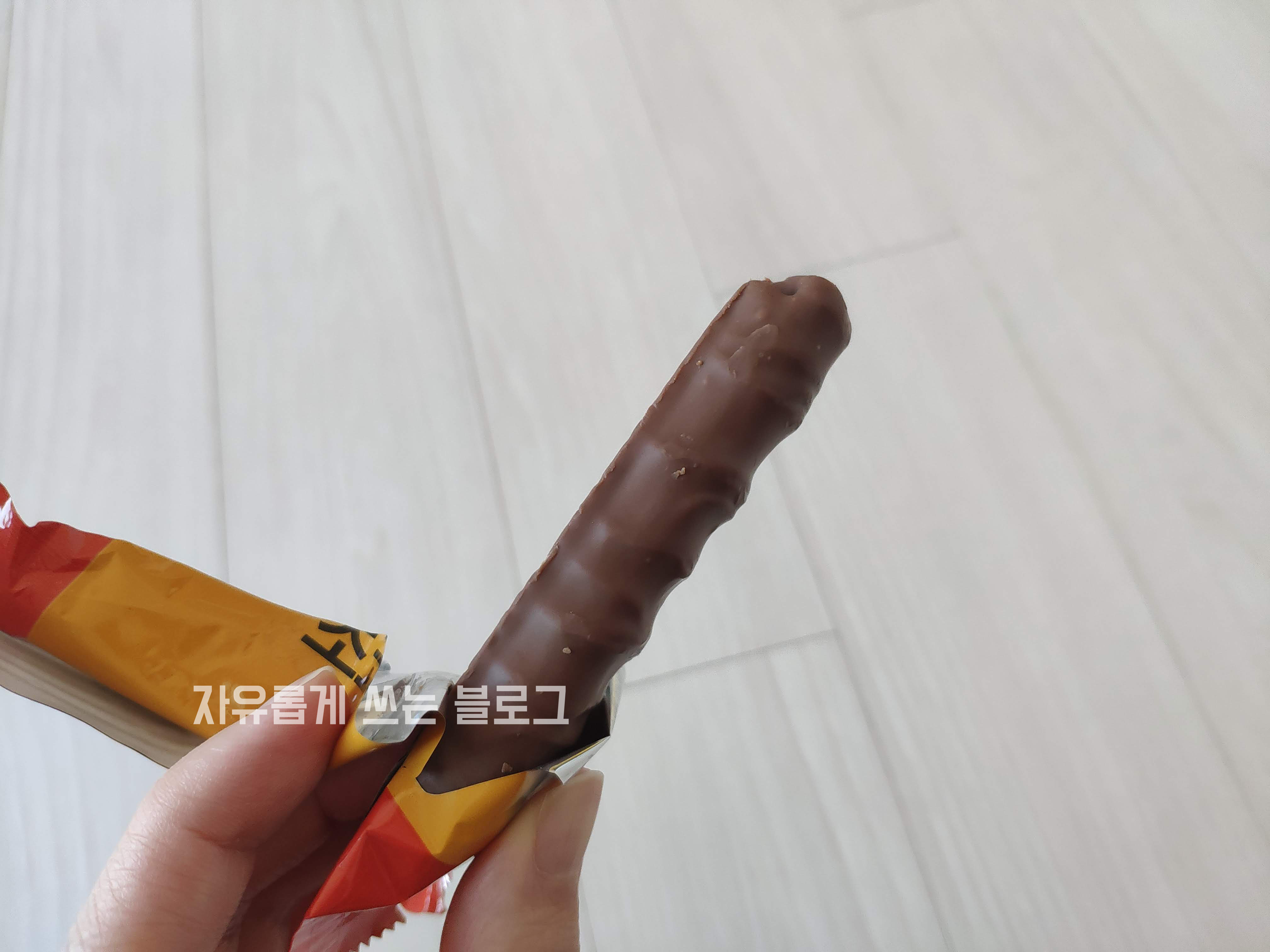 포장을 뜯어보면 이런 모습입니다. 초콜릿으로 겉부분이 코팅이 되어있는 비주얼이에요.
