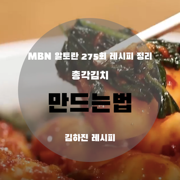 이번 포스팅에서는 2020년 3월 22일 알토란 275회 ‘김하진의 <맛 김치>’ 코너에서 김하진 선생님이 알려주셨던,