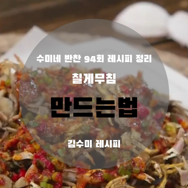 그럼 지금부터 수미네 반찬 김수미 선생님의 칠게 무침 만드는 방법 정리해보도록 하겠습니다.