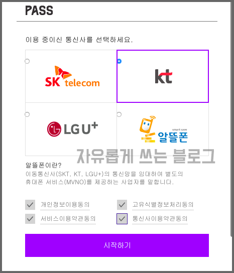 ▼ pc와 절차가 거의 비슷한데요, 성명과 주민등록번호 입력 후