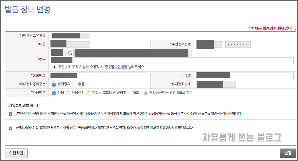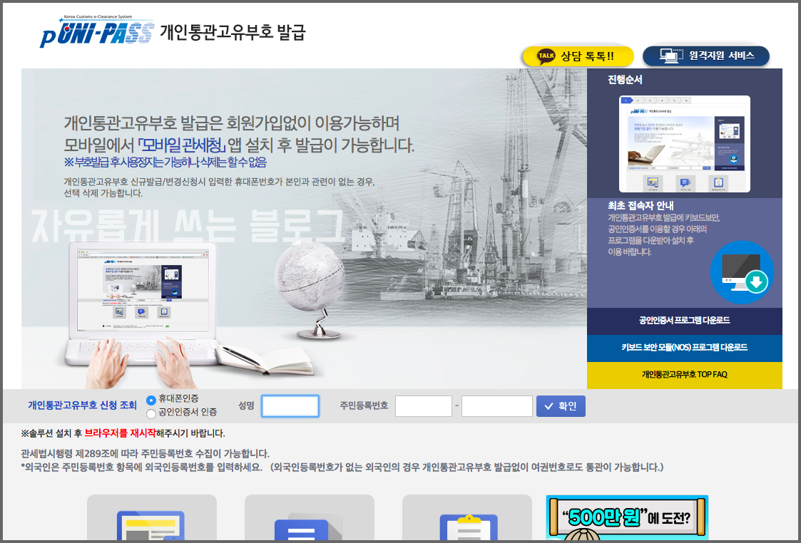 # 개인통관고유부호 발급 / 조회 유니패스 사이트 주소