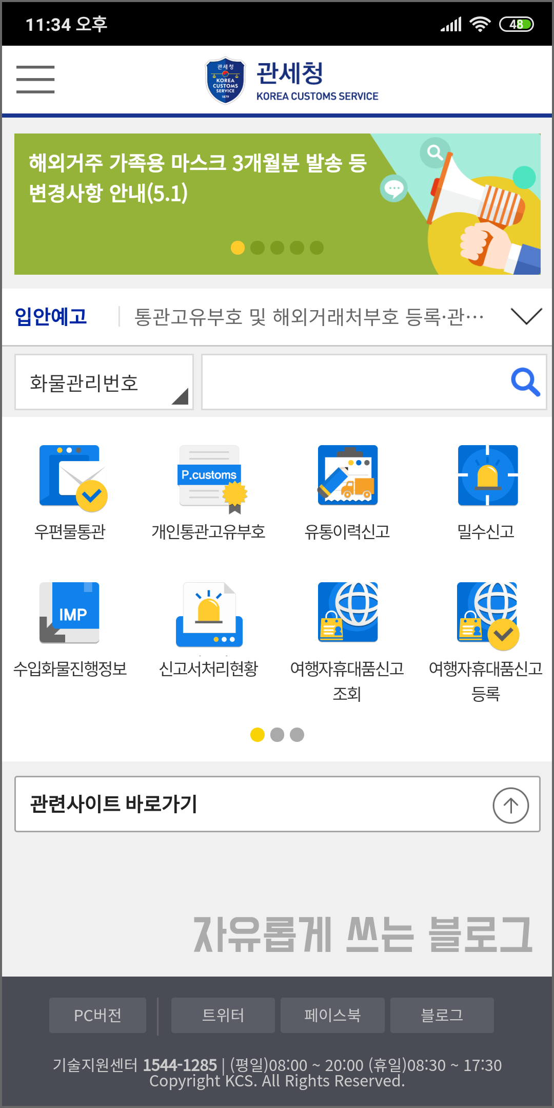 플레이스토어나 앱스토어에서 ‘모바일관세청’ 이라고 검색하시면 됩니다.