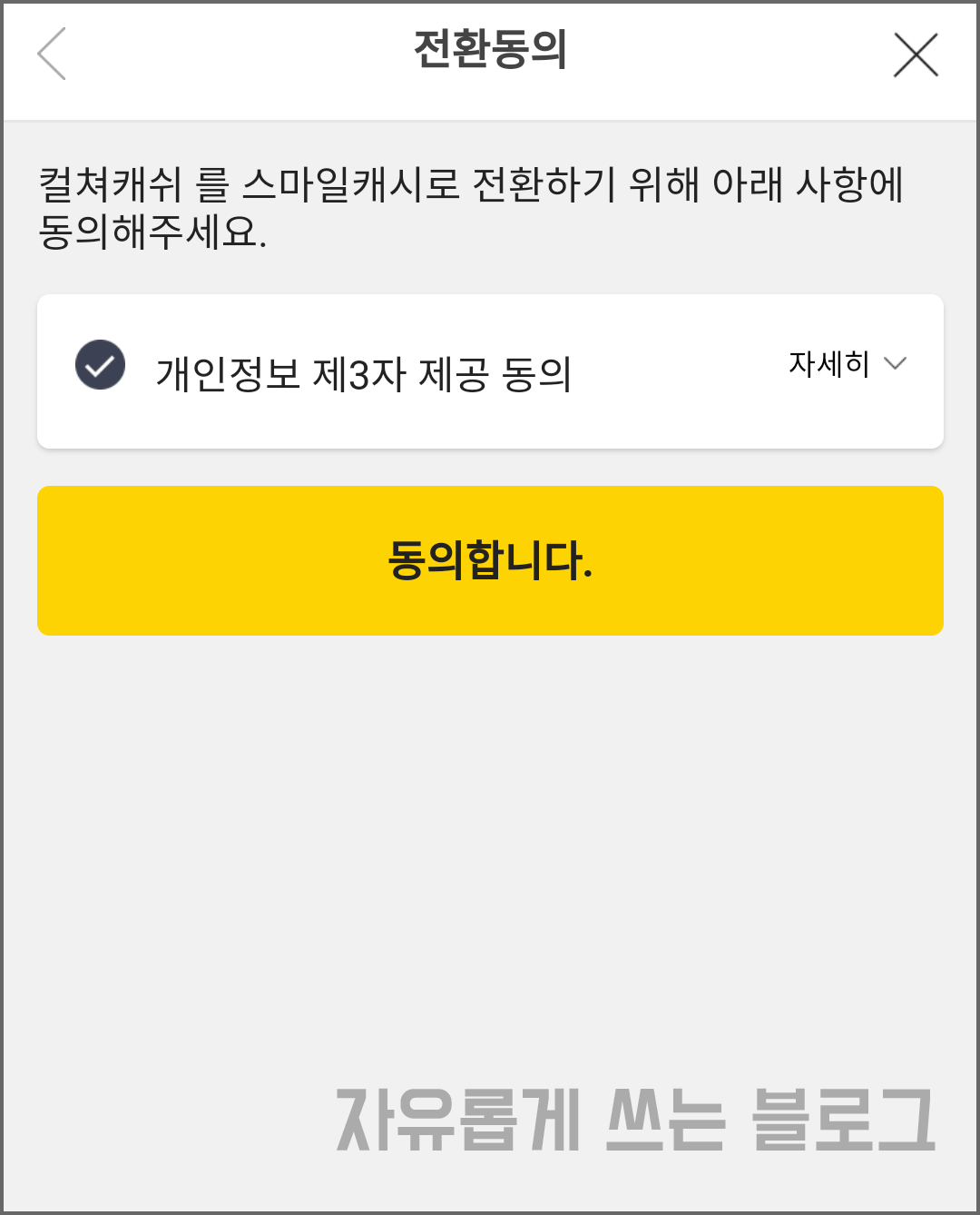 전 컬쳐캐쉬를 스마일캐시로 전환할 예정이므로 '컬쳐캐쉬'를 눌러 주었어요.