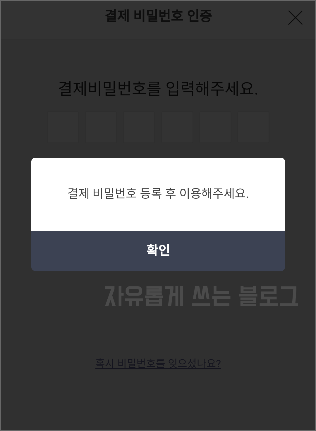 그리고 방금 설정한 결제 비밀번호를 다시한번 입력하면...