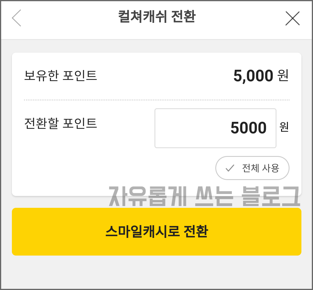 저는 아까 충전했던 컬쳐캐쉬 5,000원 전부를 입력했어요.