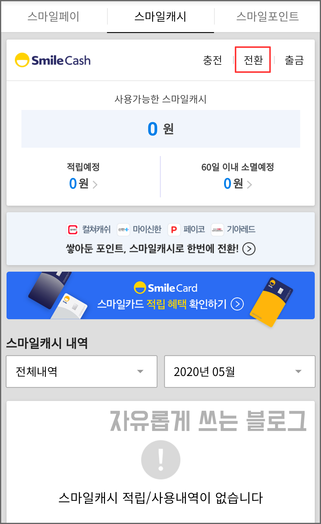 컬쳐캐쉬가 스마일캐시로 전환이 된 것을 볼 수 있습니다. :)