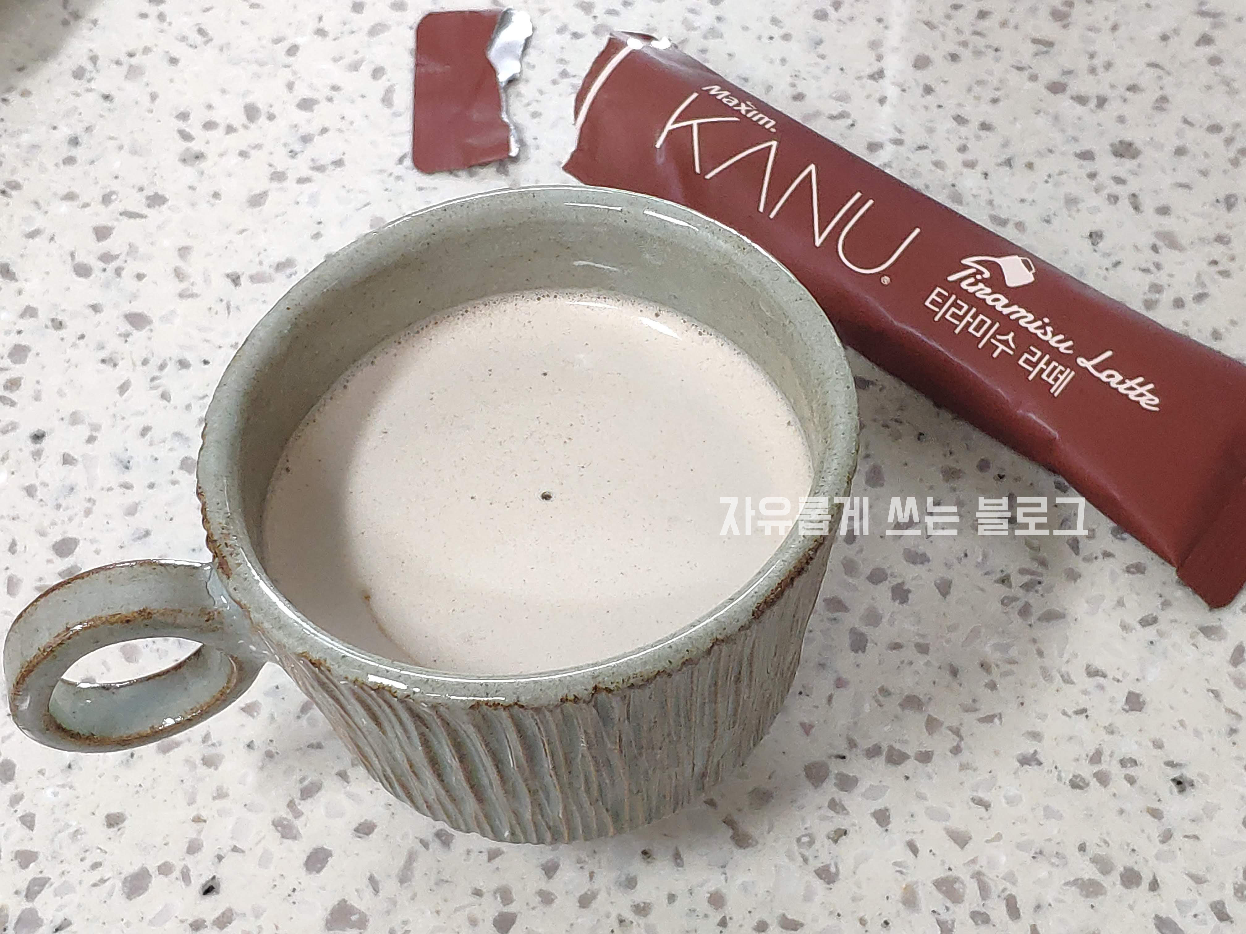 카누 티라미수 라떼를 이렇게 컵에 부은 다음, 뜨거운물을 부어주면 끝!