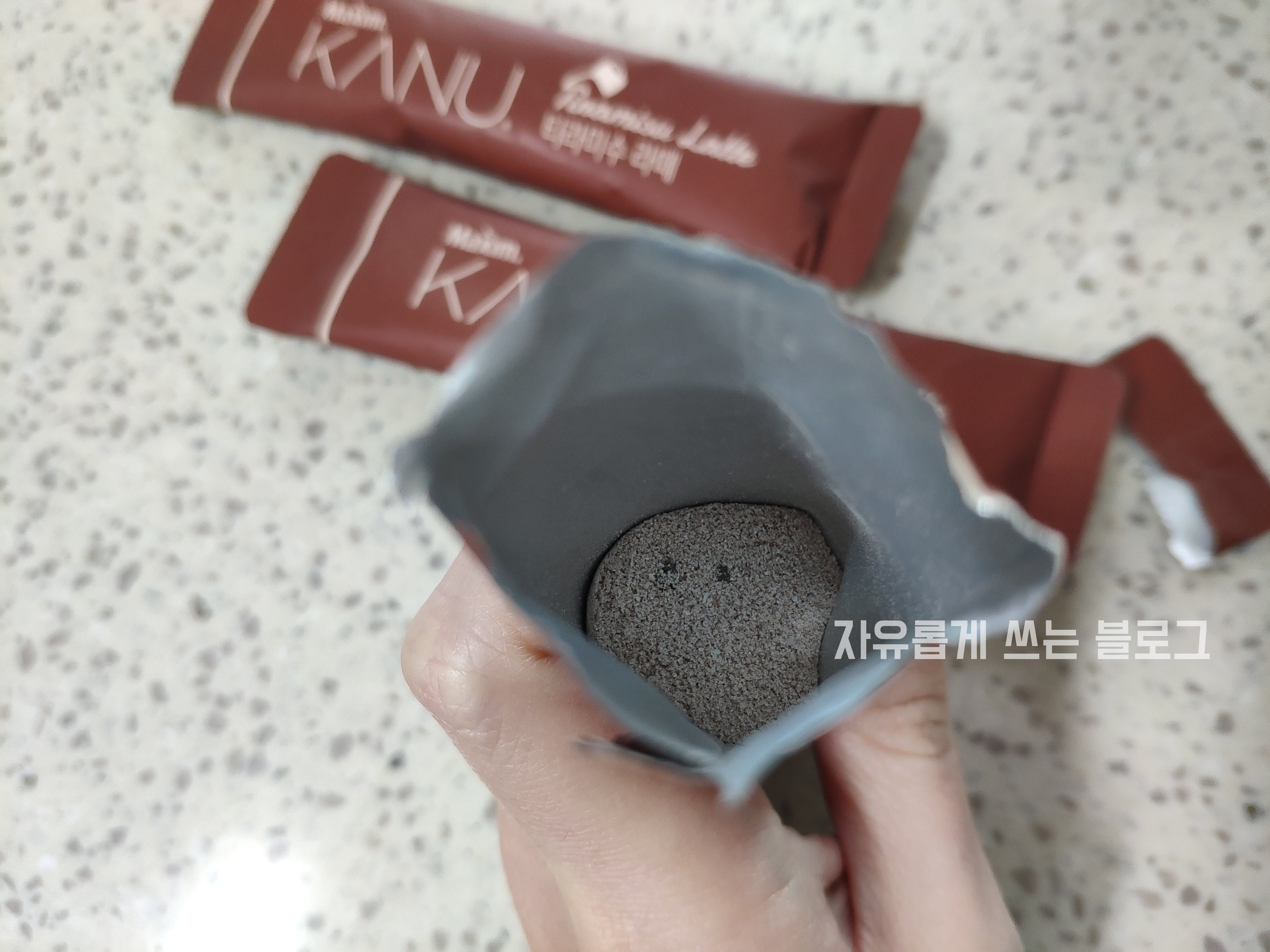 맥심 카누 바닐라 라떼와 티라미수 라떼 마시는법은 컵에 분말을 부은 다음,