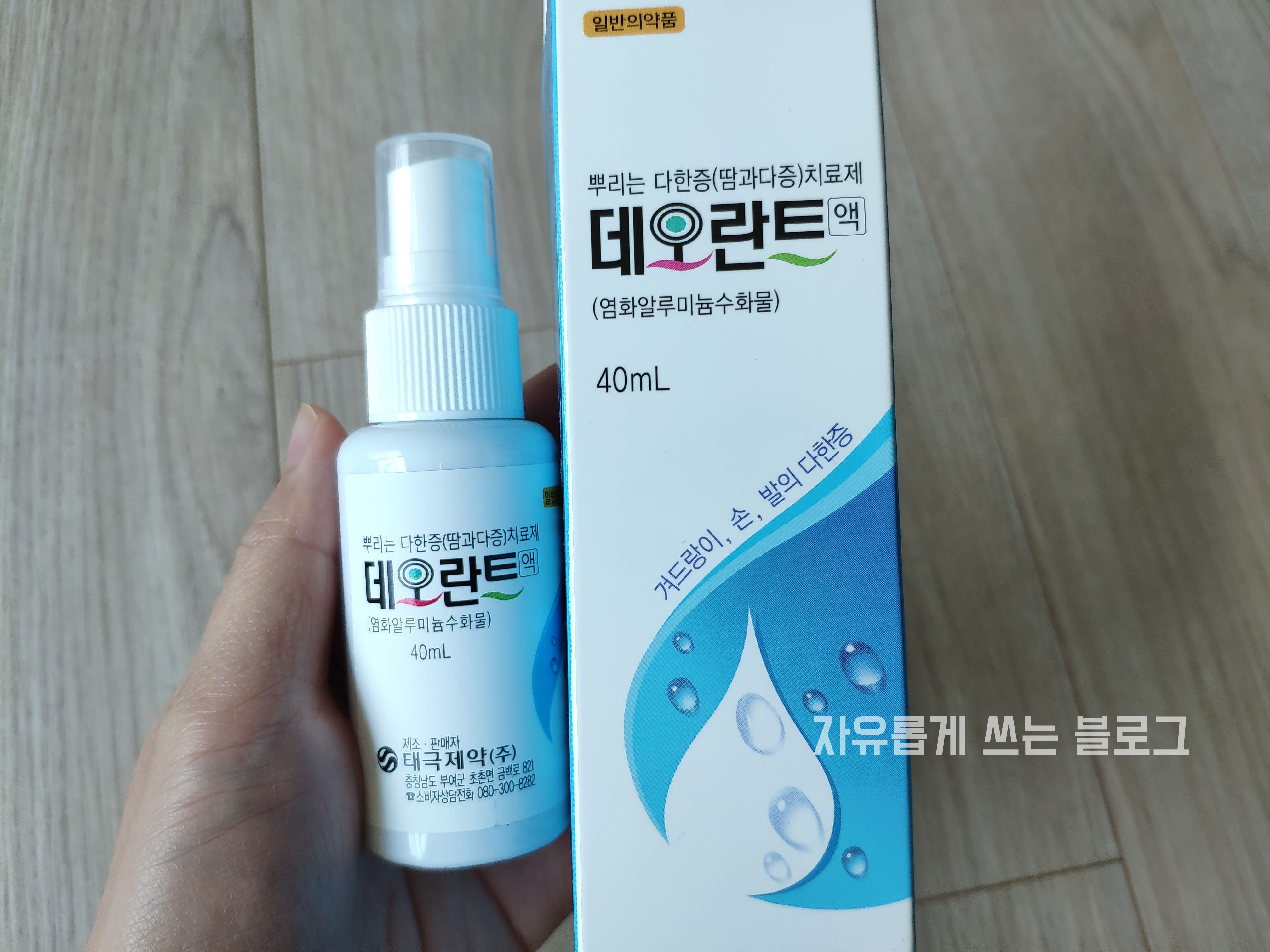 아래 사진속 제품이 바로 뿌리는 다한증 치료제 데오란트 액 입니다. 태극제약에서 나온 제품이네요.ㅎㅎ