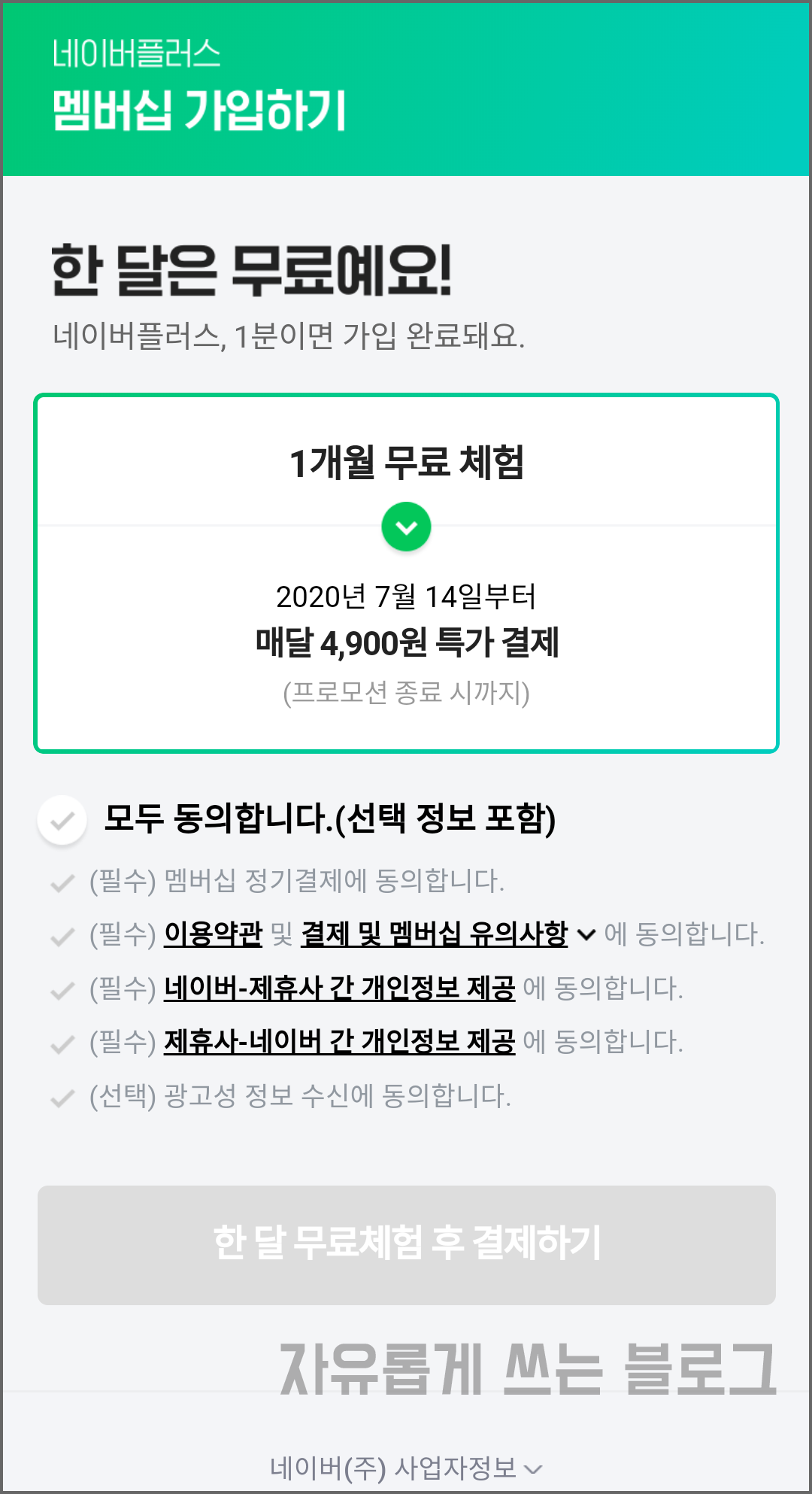 현재 네이버 멤버십은 한 달 무료체험 이벤트 중!