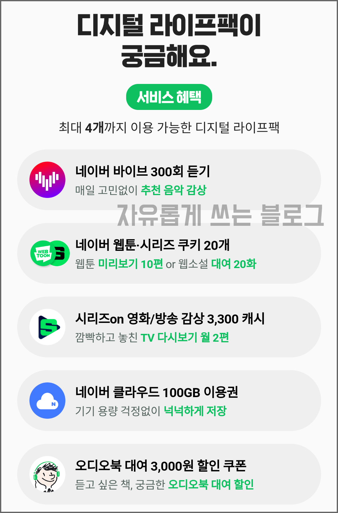 두 번째 혜택은 최대 4개까지 이용이 가능한 디지털 라이프팩 입니다.