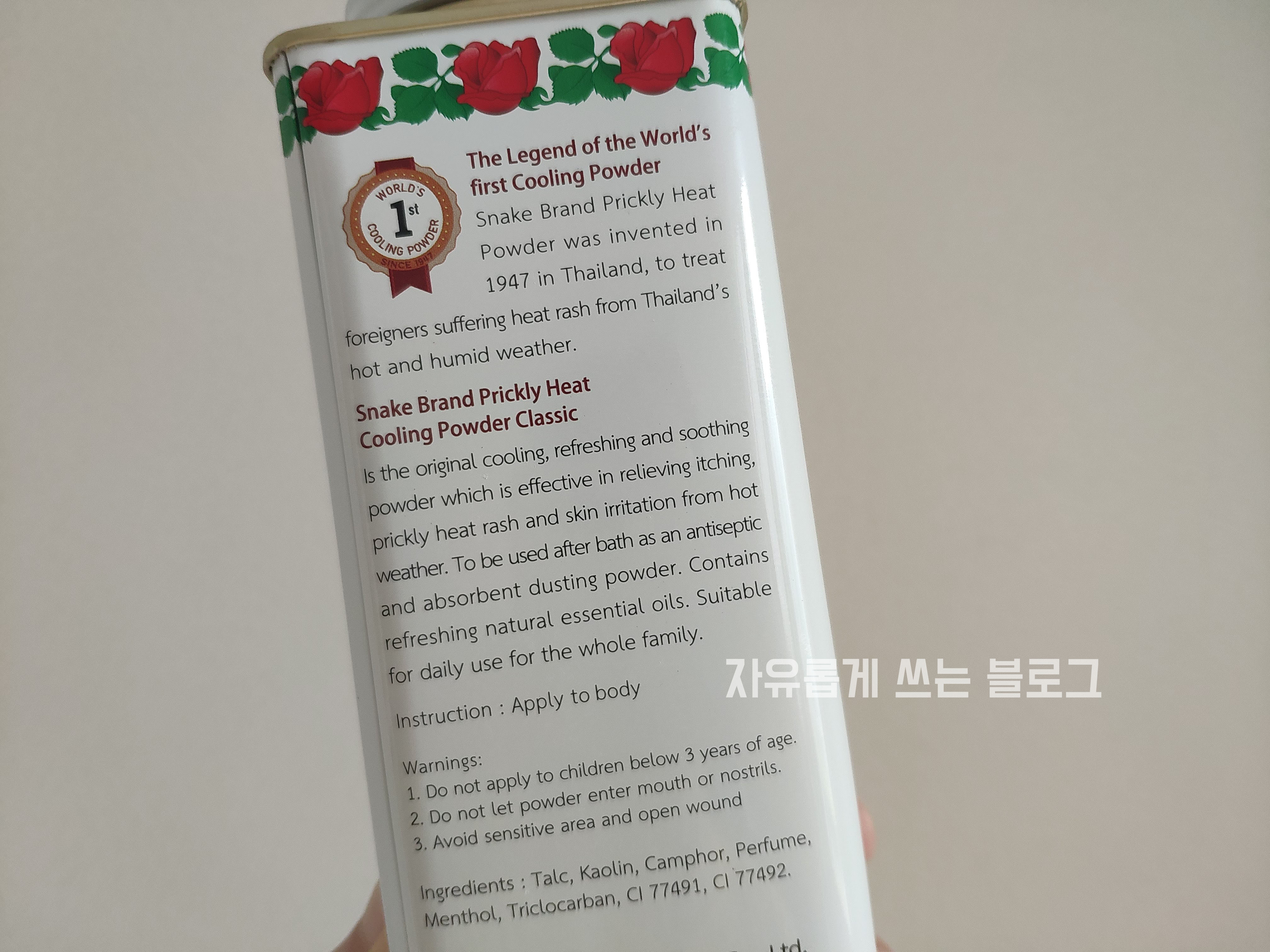 스네이크 브랜드 prickly heat 파우더는 1947년에 태국에서 처음 발명되었다고 해요.