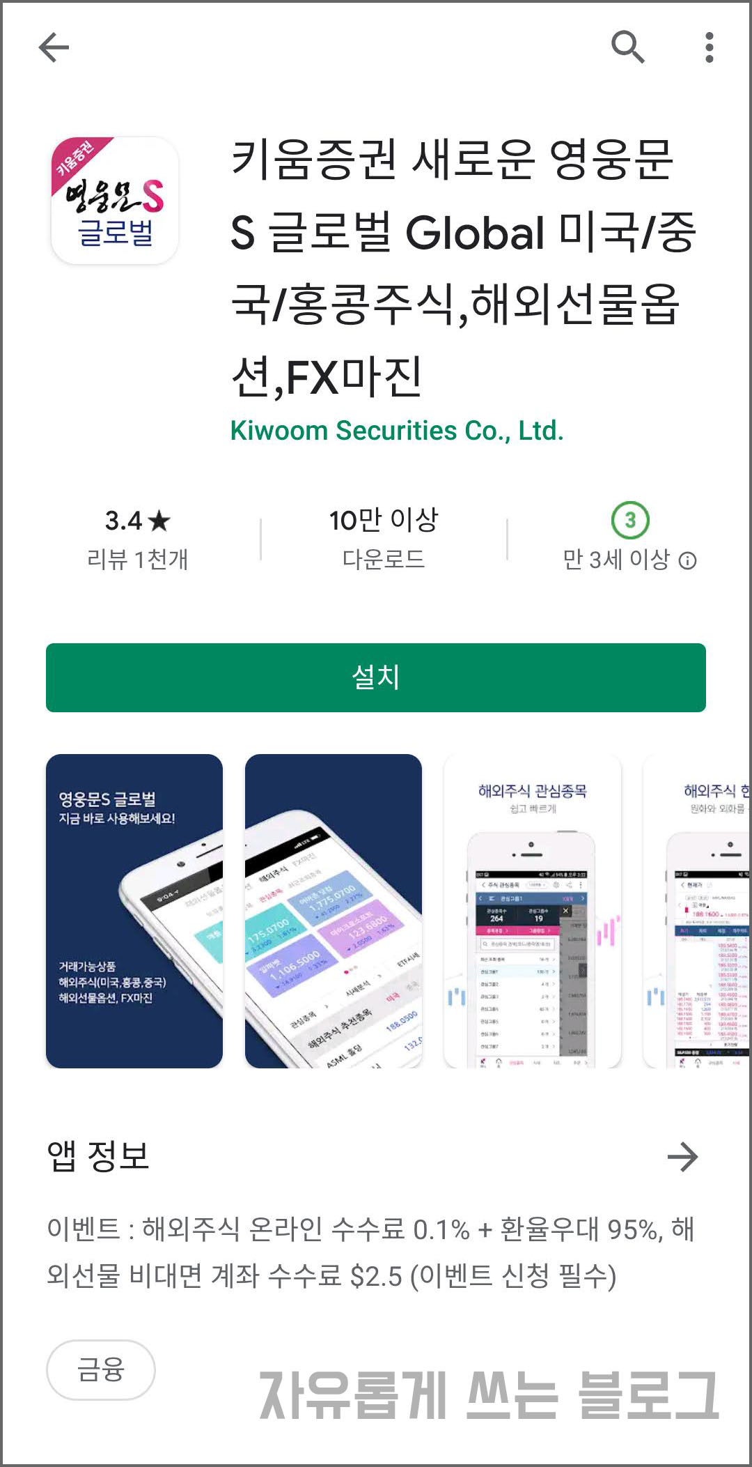 그리고 미국 주식 등 해외 주식을 거래할 예정이라면 다시 플레이스토어에서 ‘영웅문 s 글로벌’ 이라는 어플을 설치해주어야 합니다.