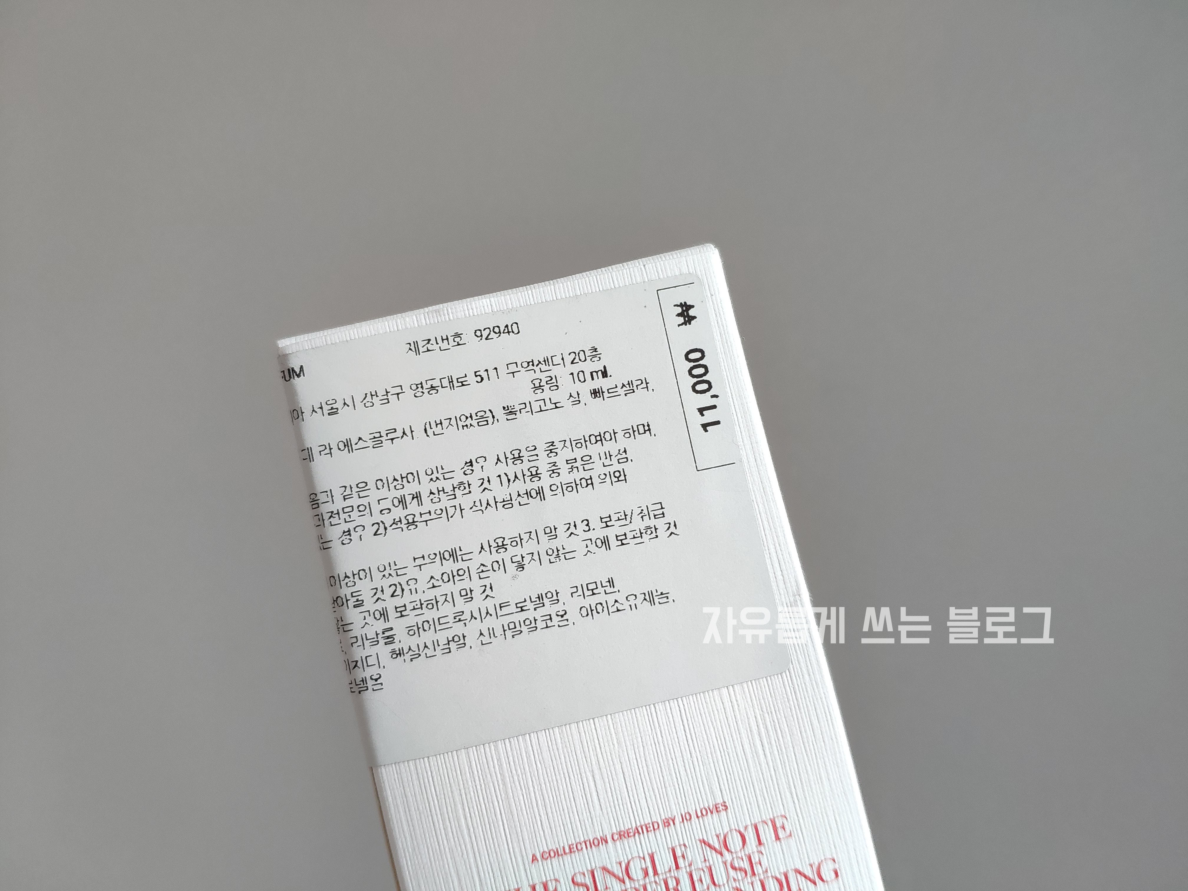 10미리 중 재고가 남아있는게 몇 종류 있었는데, 그 중 이 튜베로즈 향이 제일 맘에 들어서