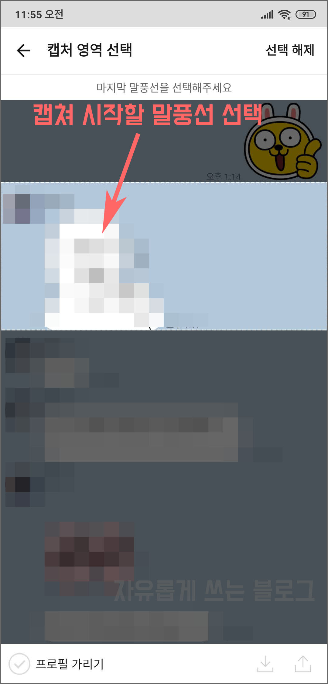 캡쳐를 시작할 말풍선 선택을 마친 뒤 이번엔 마지막 말풍선을 선택하면 됩니다.