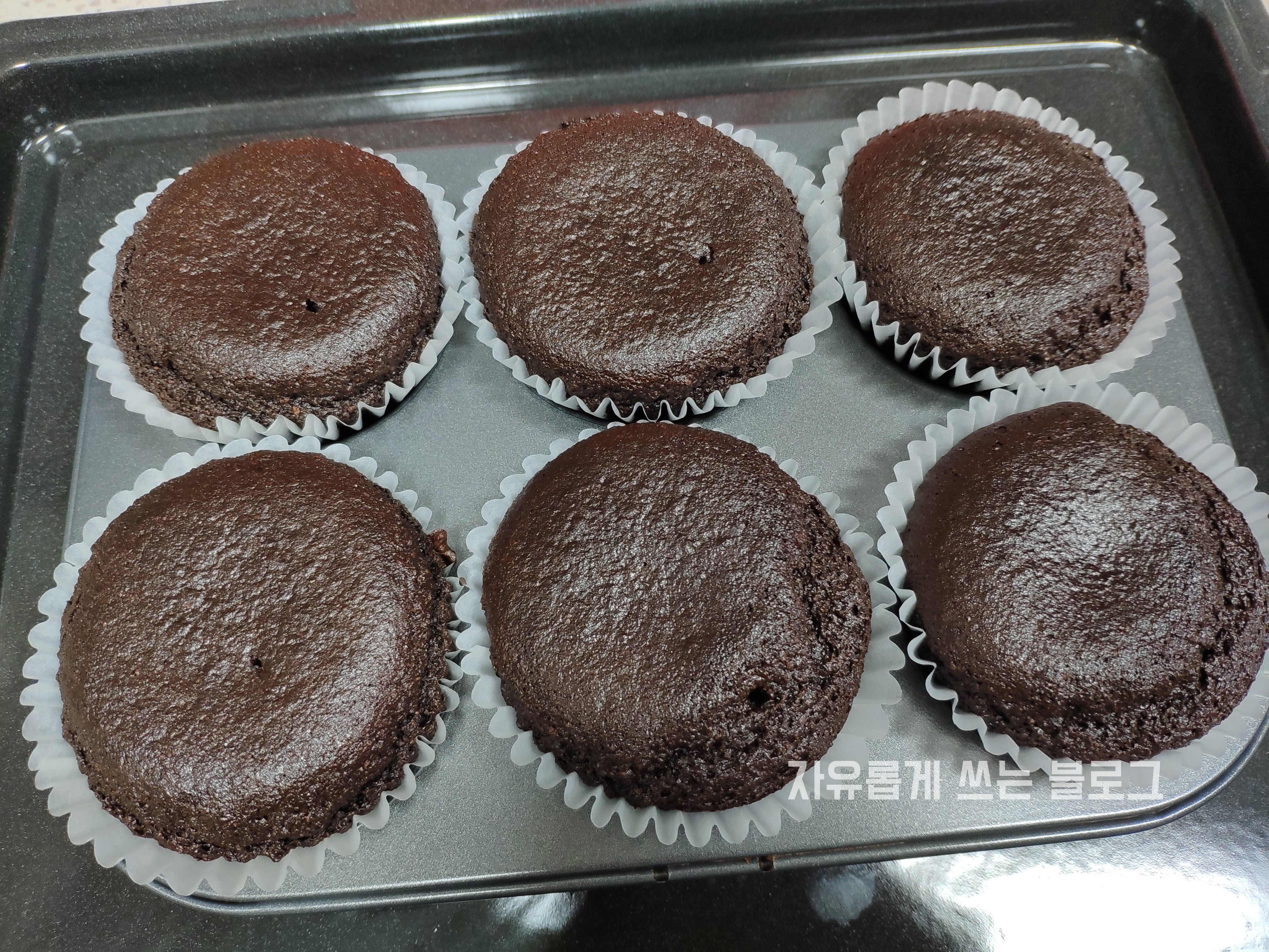 집에 있는 머핀 팬이 6구짜리밖에 없어서.. 두번 굽기 귀찮은 마음에 양을 늘려서 6개에 전부 다 채워 넣었네요.ㅋㅋ