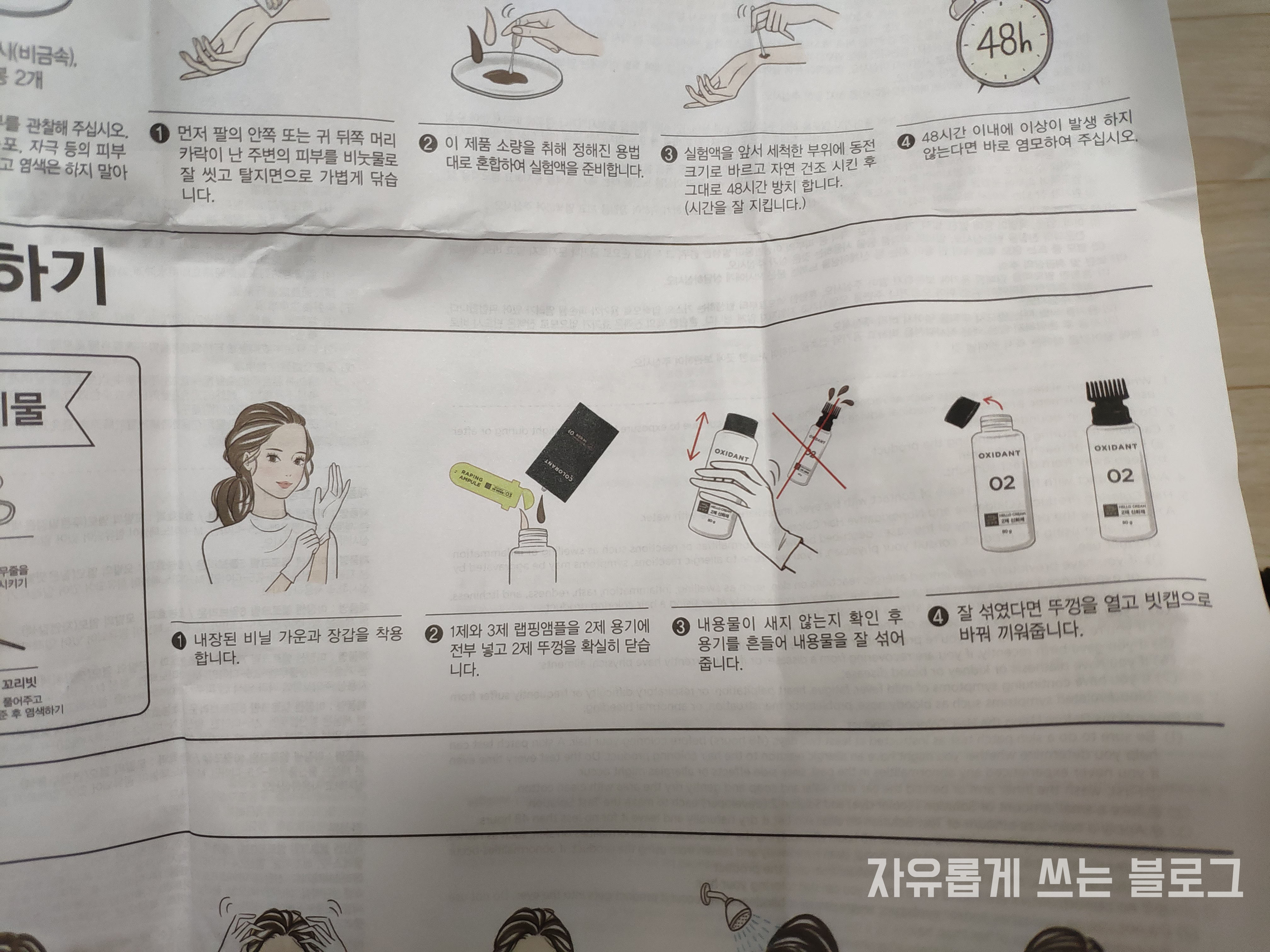 설명서에 염색하는 방법이 자세하게 잘 설명되어 있더라구요.^^