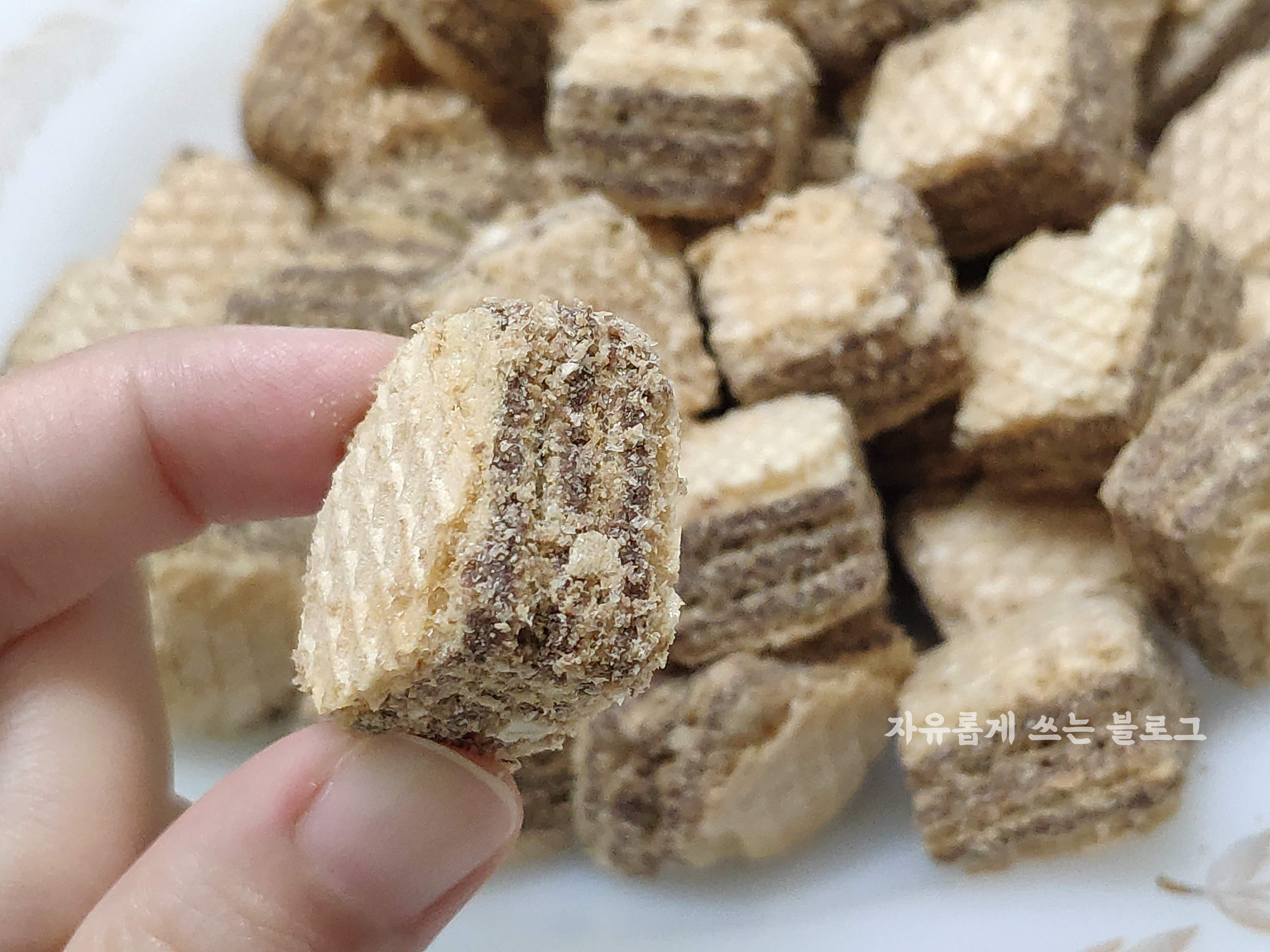 작고 네모진 모양의 귀여운 웨이퍼들이 보이네요. :)