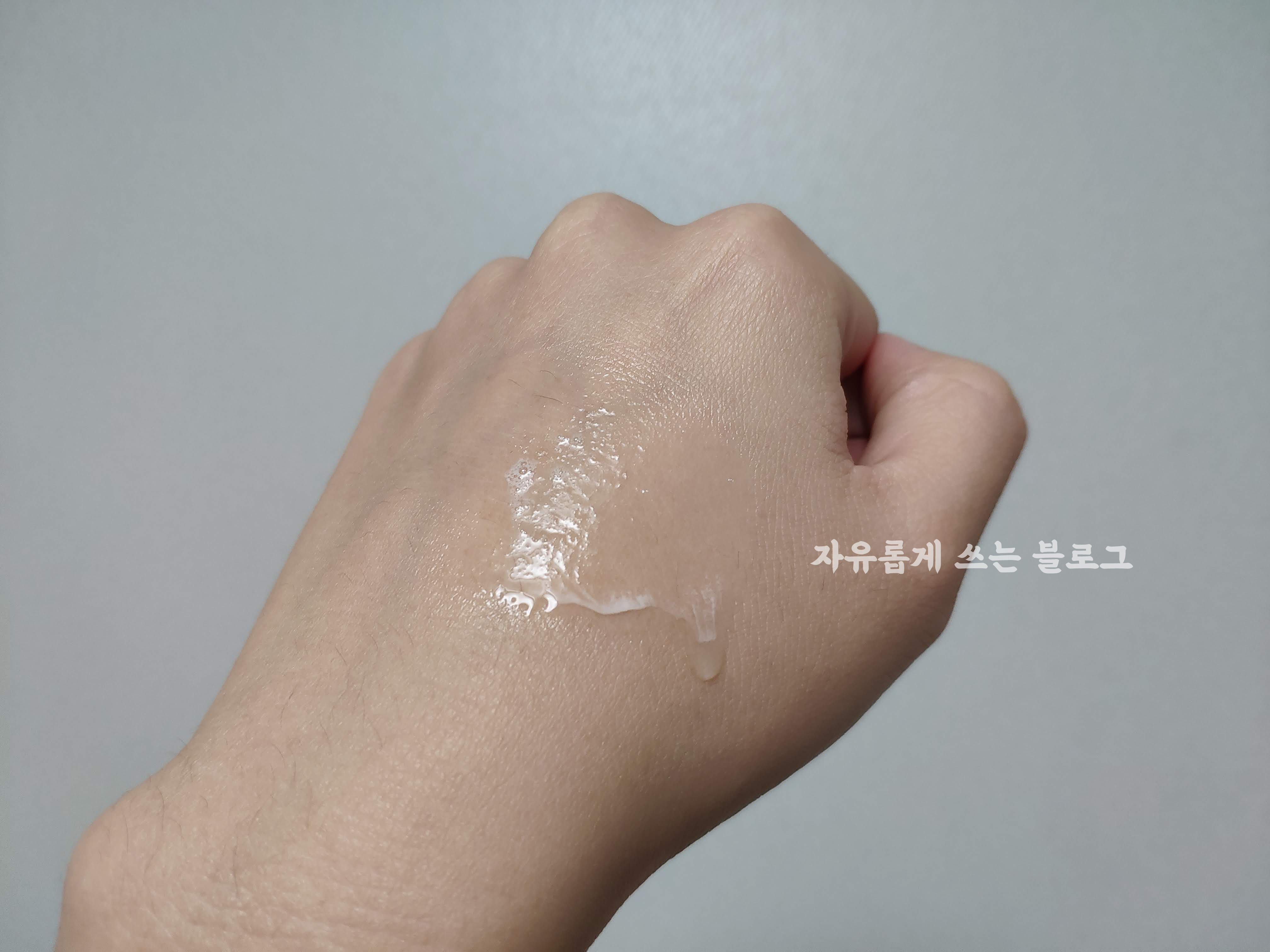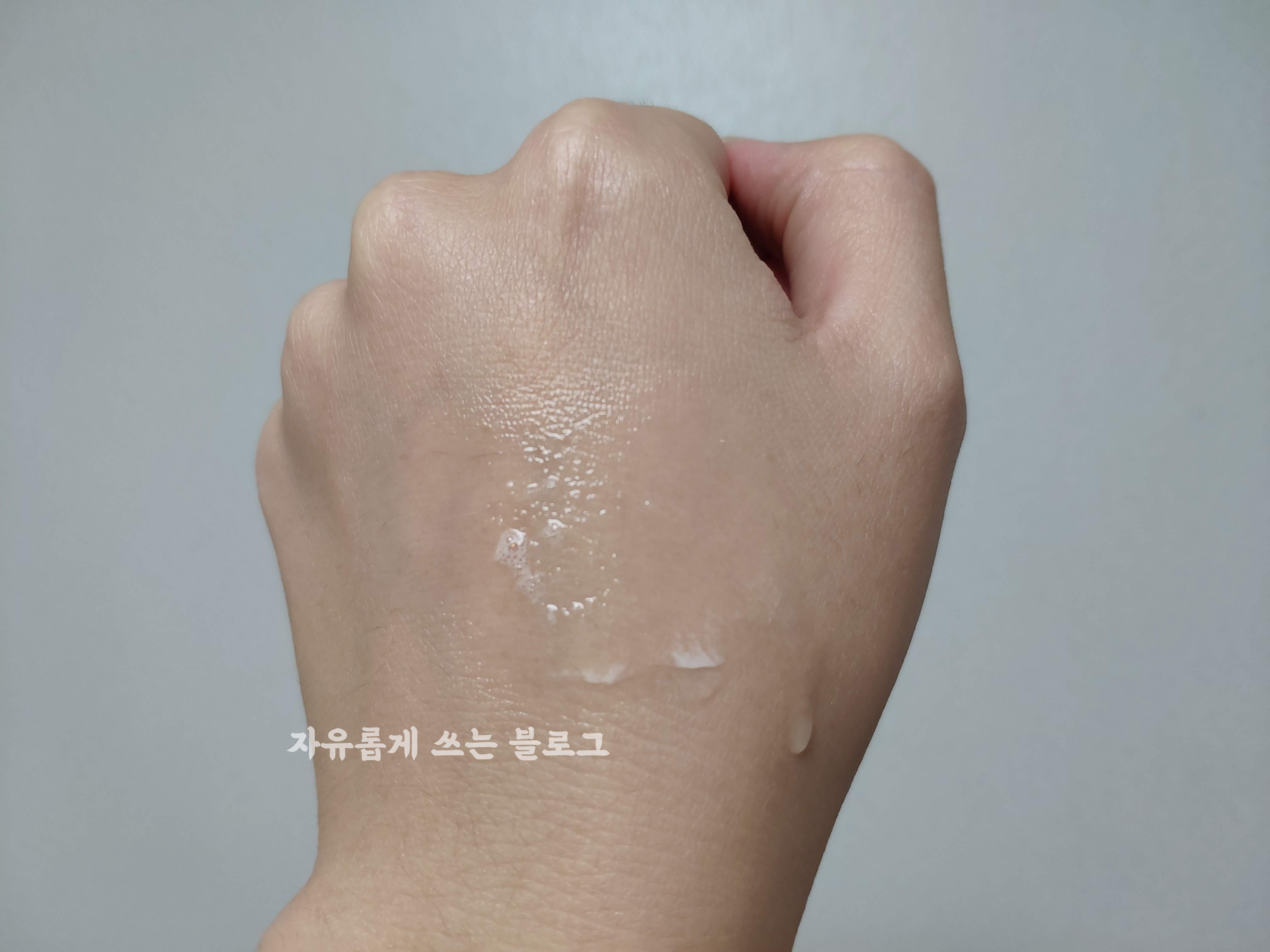 손등에 뿌려본 모습이에요.