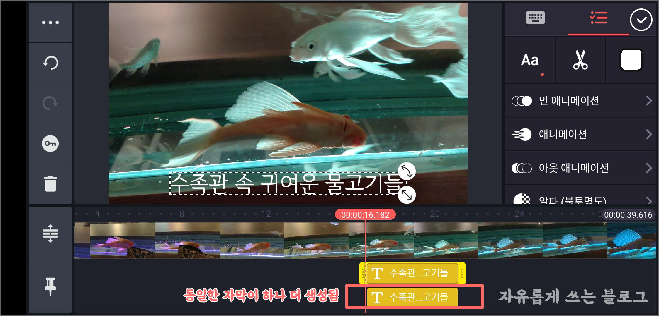 저도 키네마스터 사용법을 처음 익히는 단계에서 자막을 넣다 보니 처음에 좀 헷갈리는 부분이 많더라구요.