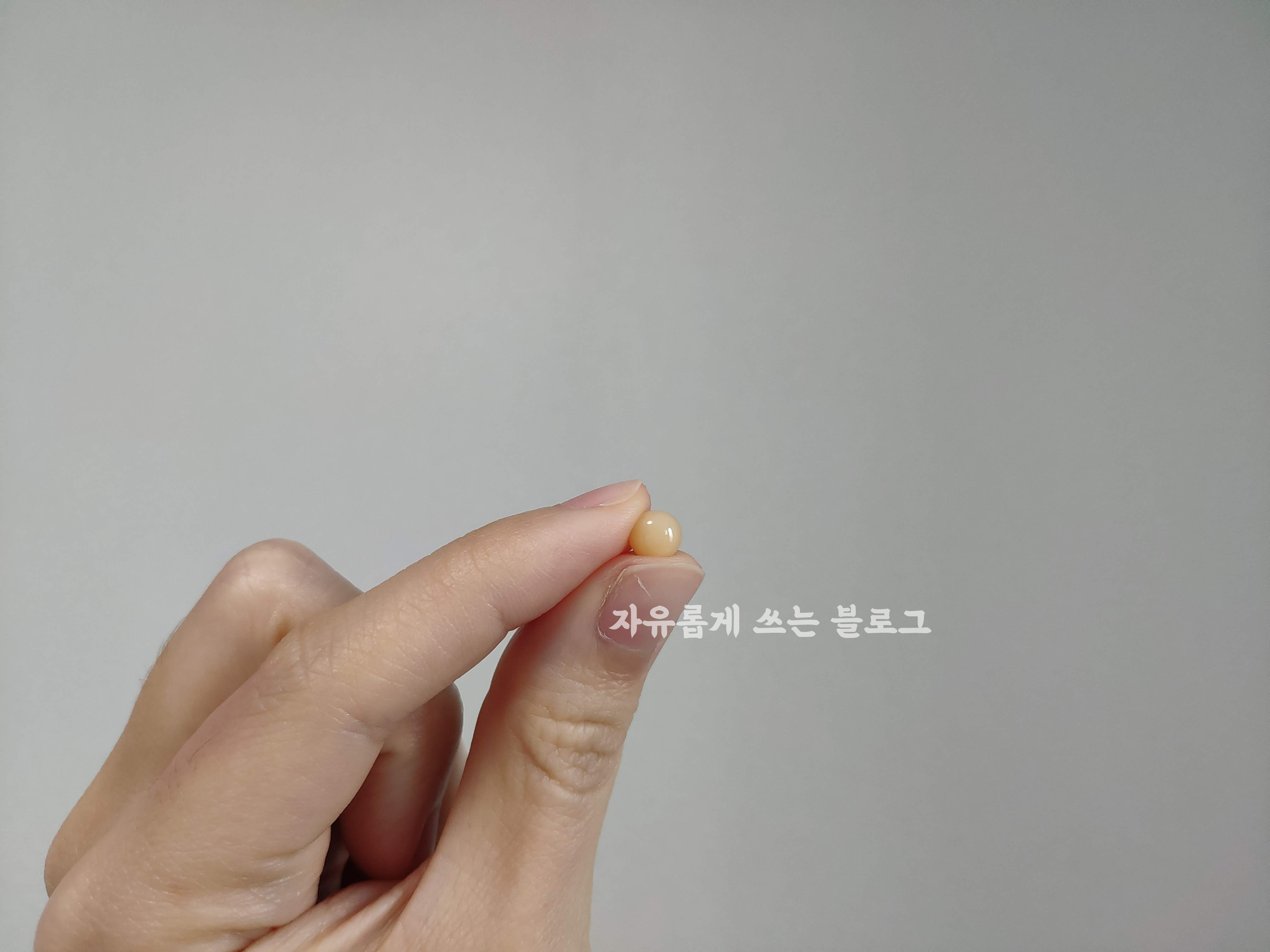 알 크기는 요 정도..? 이렇게 하루 3알씩 꾸준히 섭취중이네요. :)