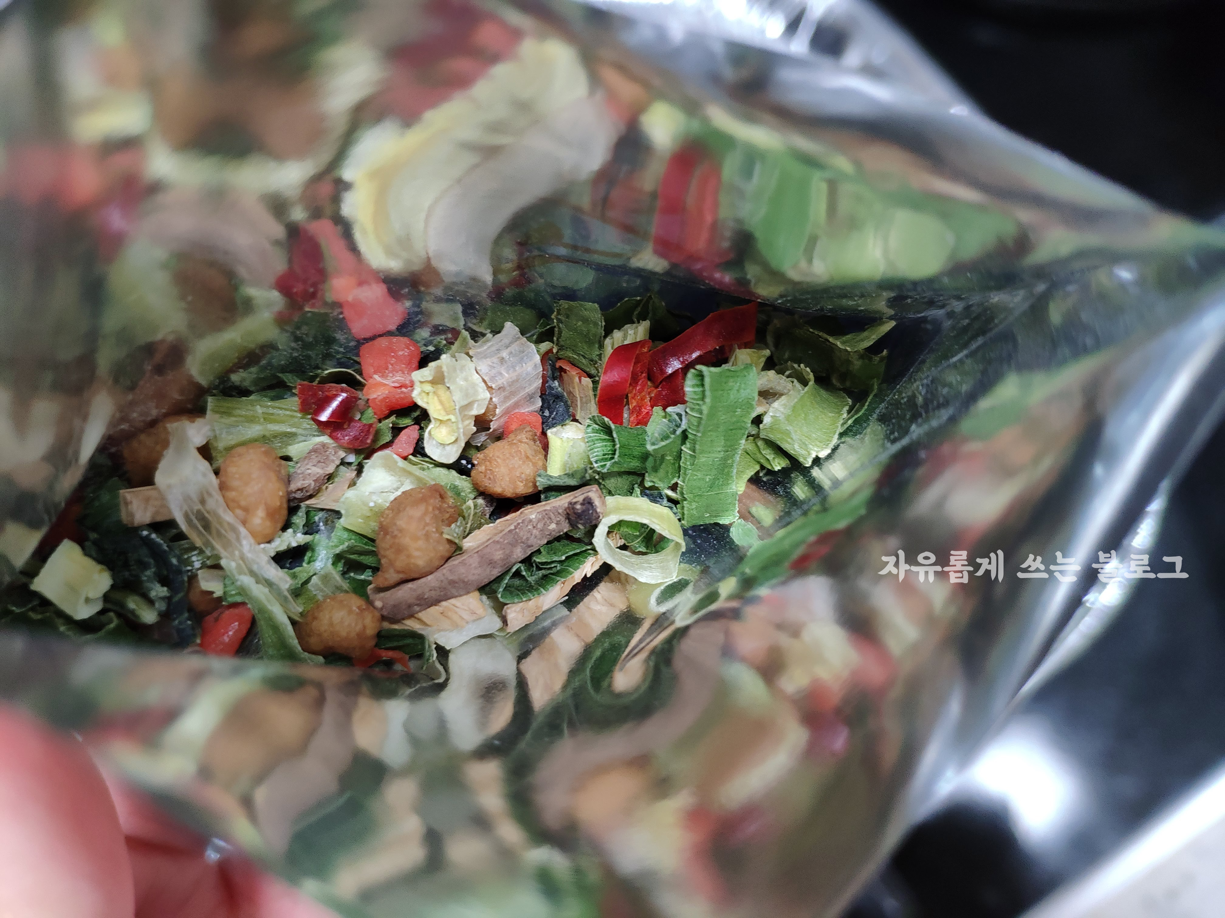 건더기가 꽤 실한 편이더라구요. 건조된 파, 고추, 버섯 등이 알차게 들어가 있습니다.ㅎㅎ