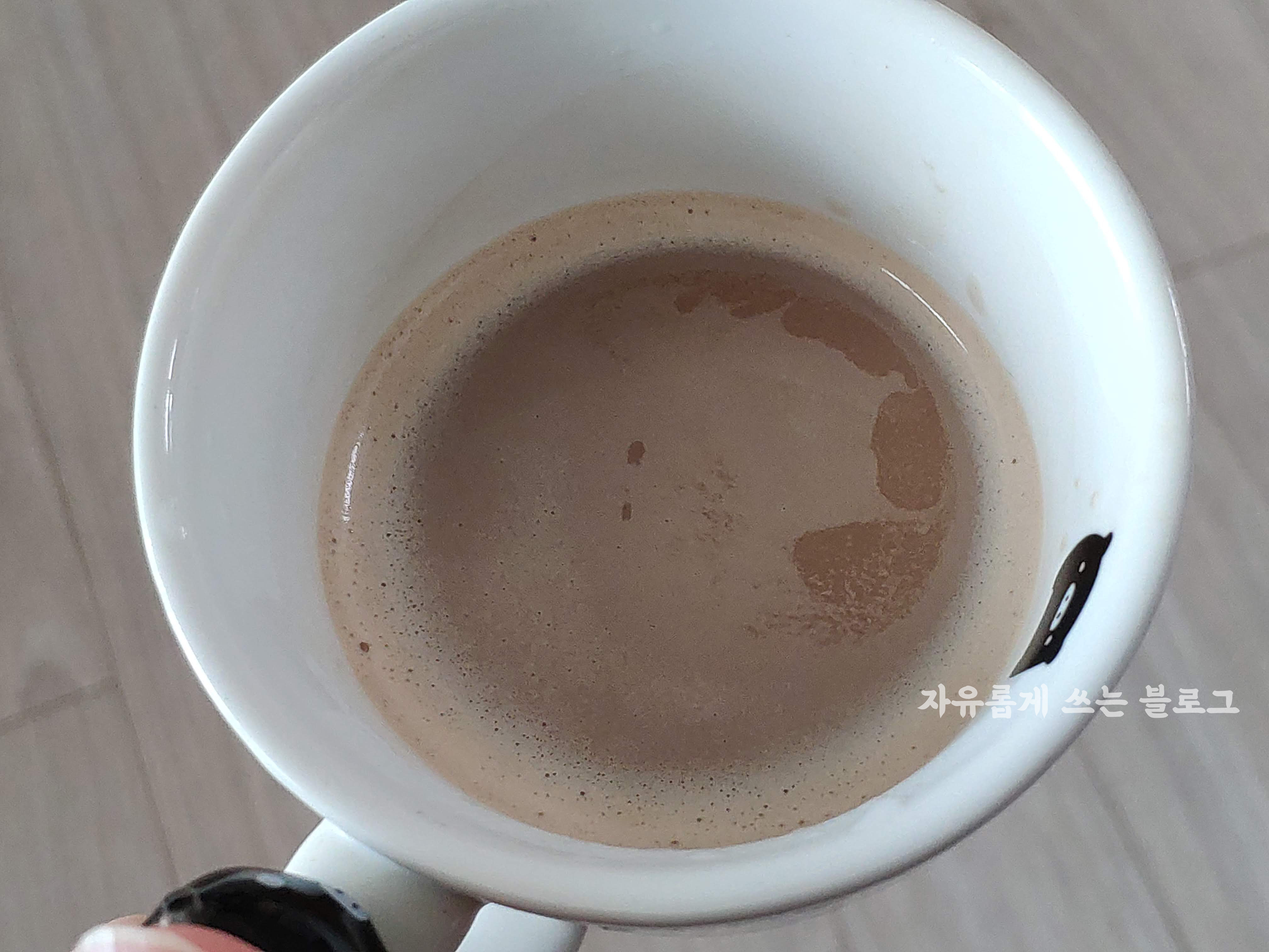 일반 커피믹스보다 아주 살짝만 물을 더 부으면 되는듯 합니다.ㅎㅎ