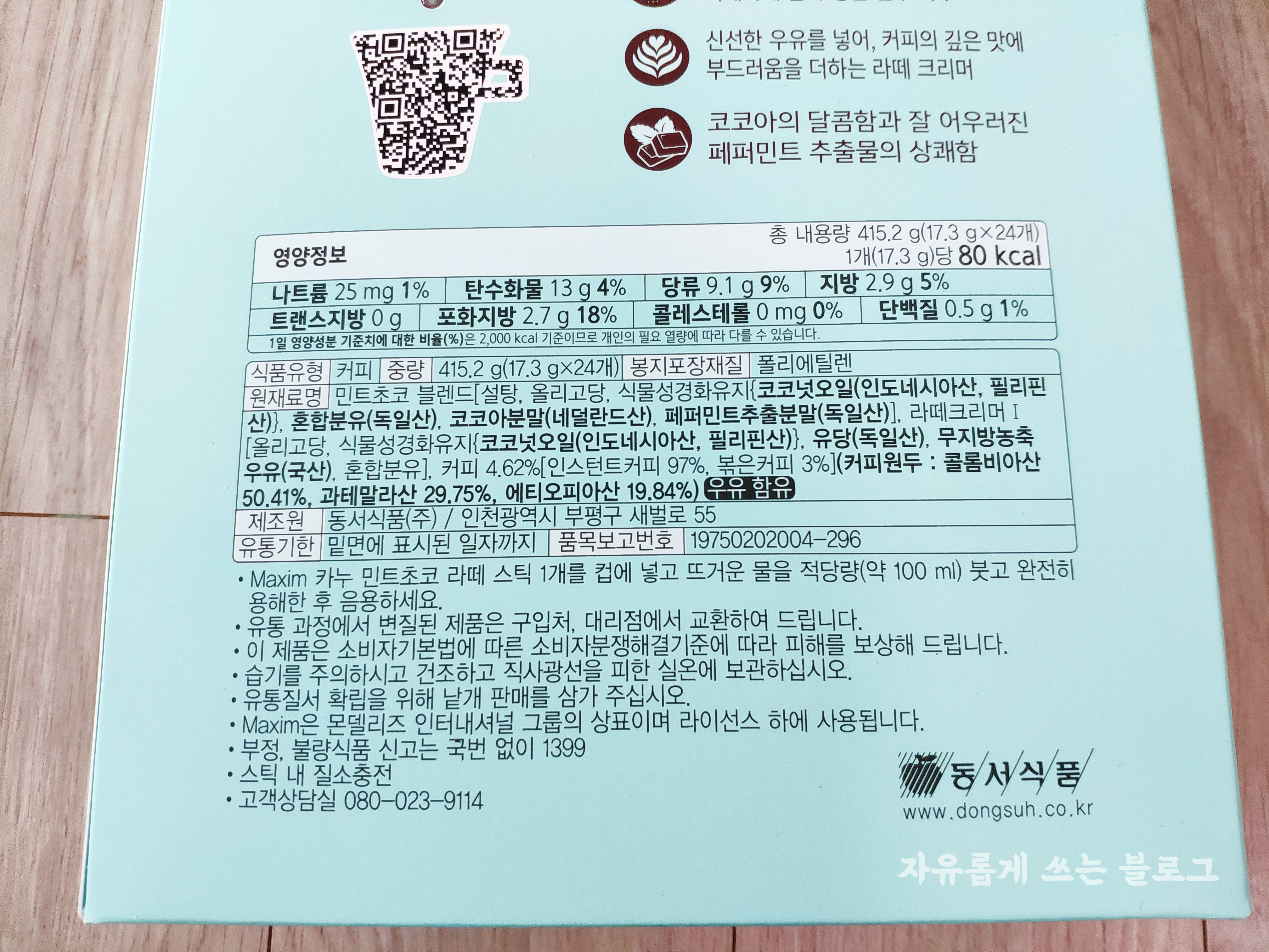 원재료명을 보니 민트초코 블렌드, 코코아분말, 페퍼민트추출분말 등이 보이네요.