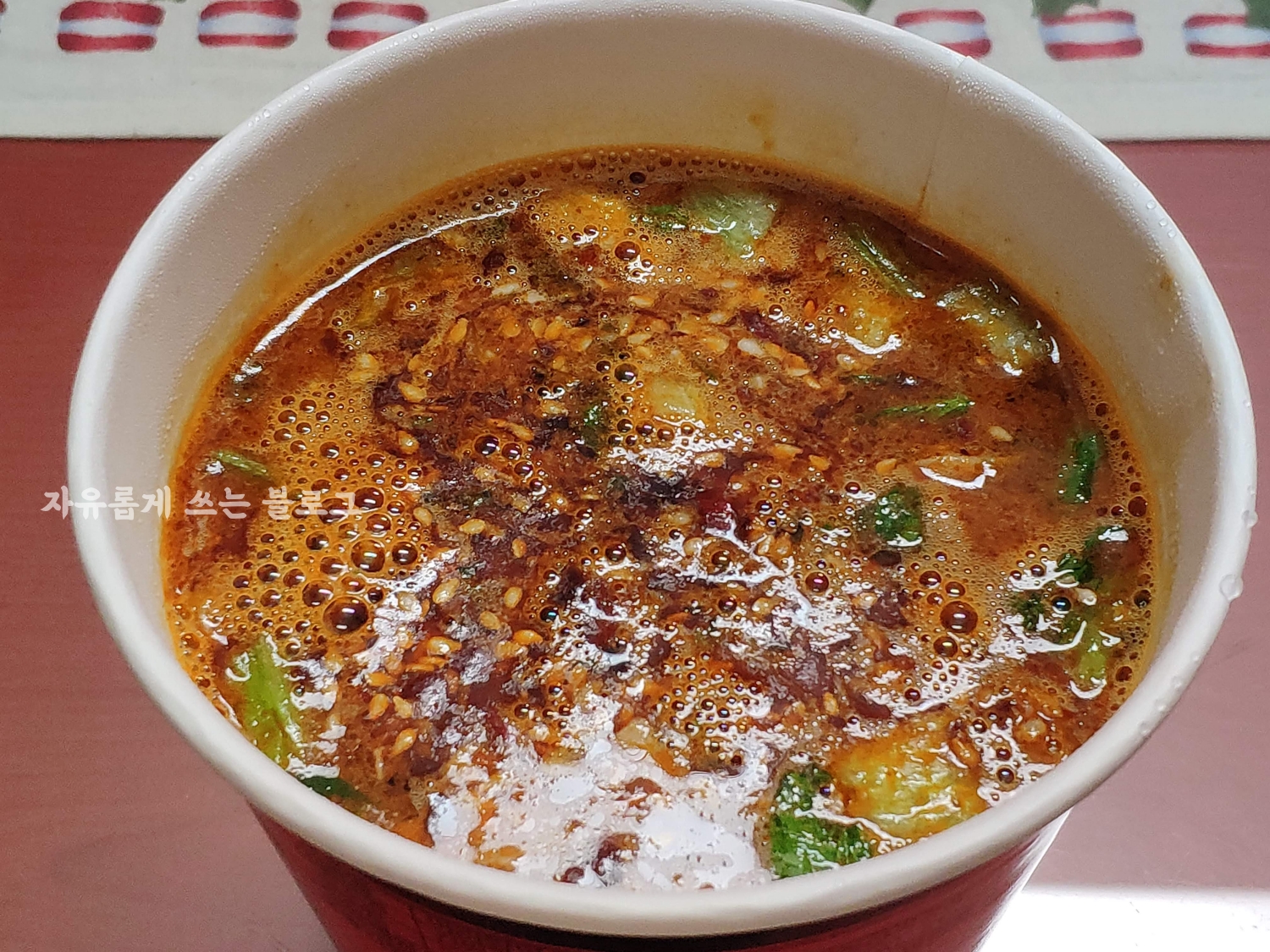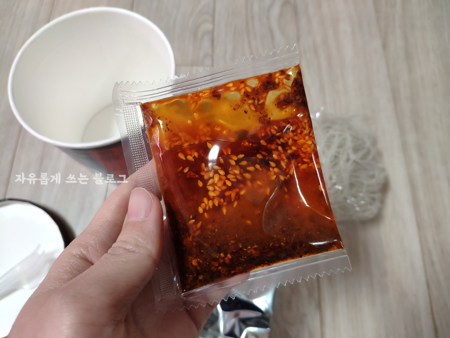 그런데 실제로 먹어 보니까 정말 제대로 얼얼한 마라탕 맛이 나서 맛있긴 하더라구요.ㅎㅎ