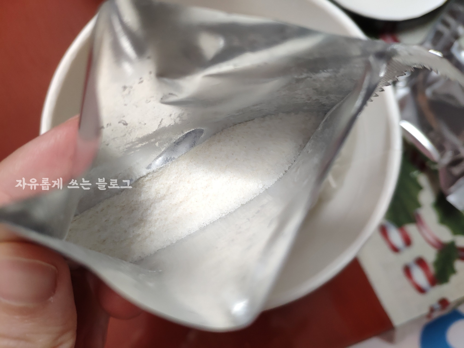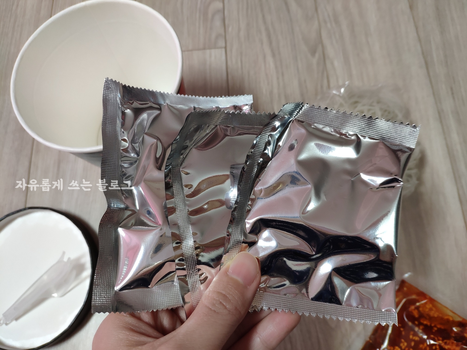 그리고 스프를 하나씩 뜯어서 넣어주었어요.