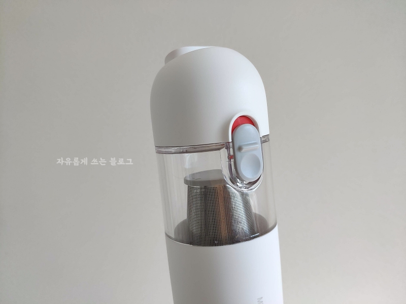 여기가 먼지통 부분. 먼지통 크기가 아주 크진 않지만, 어차피 용도 자체가 메인 청소기는 아니기 때문에 충분합니다.