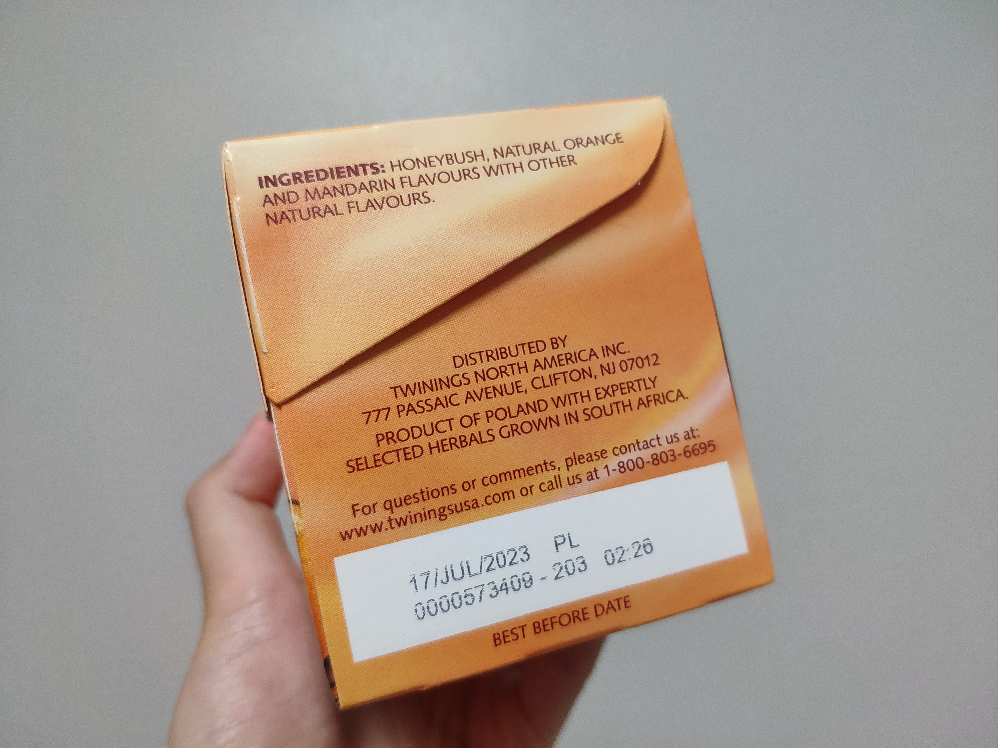 아래 사진 속 제품이 바로 아이허브에서 구매한 트와이닝(TWININGS)의 허니부쉬, 만다린 & 오렌지 허브차입니다.