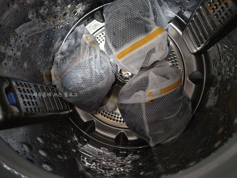 구멍내거나 터트리지 말고 그냥 이 상태 그대로! 세탁기에 넣어주면 됩니다.