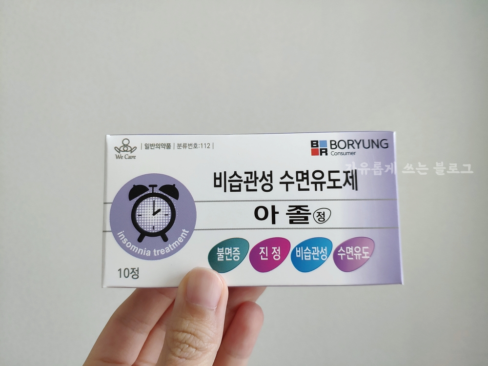 제가 약국에서 산 수면유도제는 보령제약에서 나온 '아졸'이라는 수면유도제였어요.