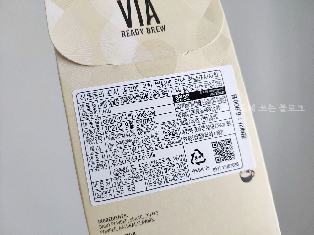 참고로 스타벅스 VIA 바닐라라떼는 1스틱 당 칼로리가 92kcal 정도라고 합니다.ㅎㅎ