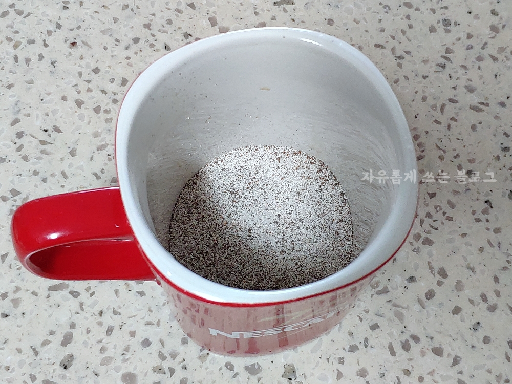 여기에 뜨거운 물 100ml를 붓고, 잘 저어주기만 하면 완성!