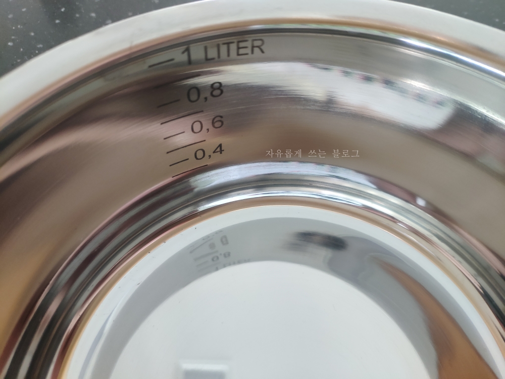 내부에는 이렇게 눈금 표시도 되어 있어서 간단하게 계량하여 사용하기에도 편리합니다.