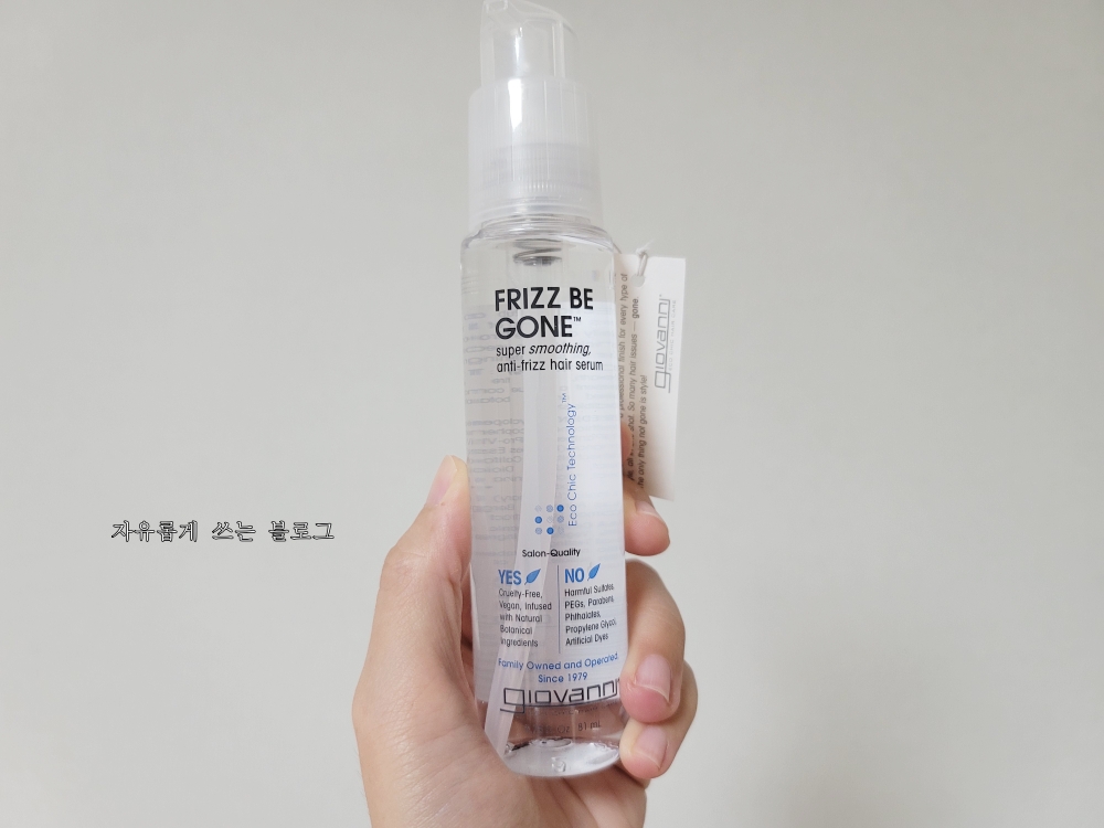 바로 지오바니(Giovanni)라는 브랜드의 프리즈 비 곤(Frizz Be Gone) 헤어세럼인데요,