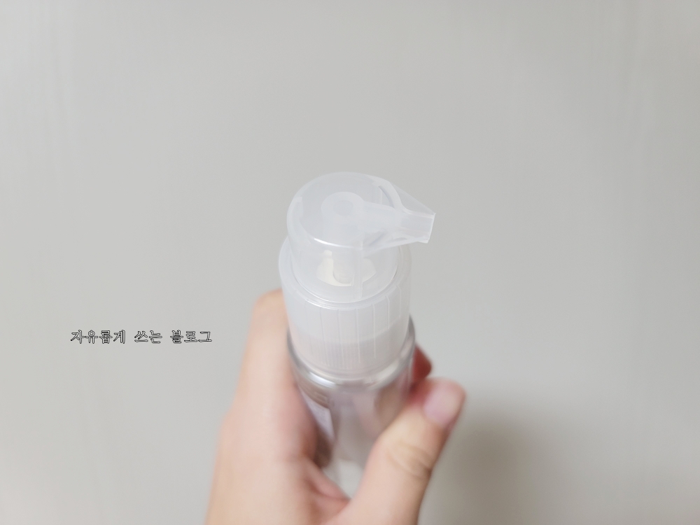 용기는 펌핑 방식으로 되어 있어요. 처음 사용 시 마개 부분을 살짝 돌려준 뒤 사용하면 됩니다.