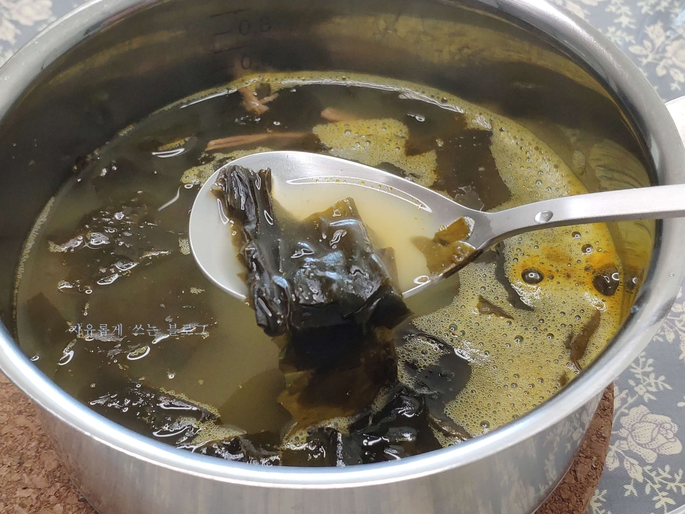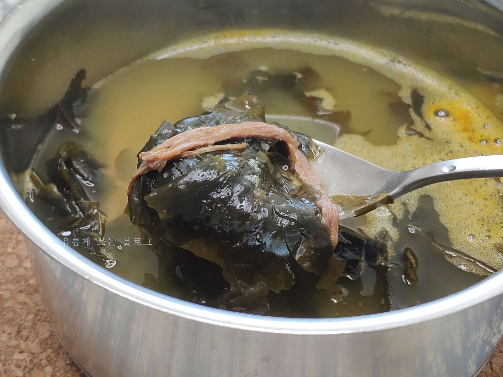 평소에 미역국을 끓일때 사골육수를 사용하지 않고 만들었다보니, 평소에 먹던 미역국과는 조금 다른 느낌이었네요. 그래도 맛은 정말 괜찮았어요!